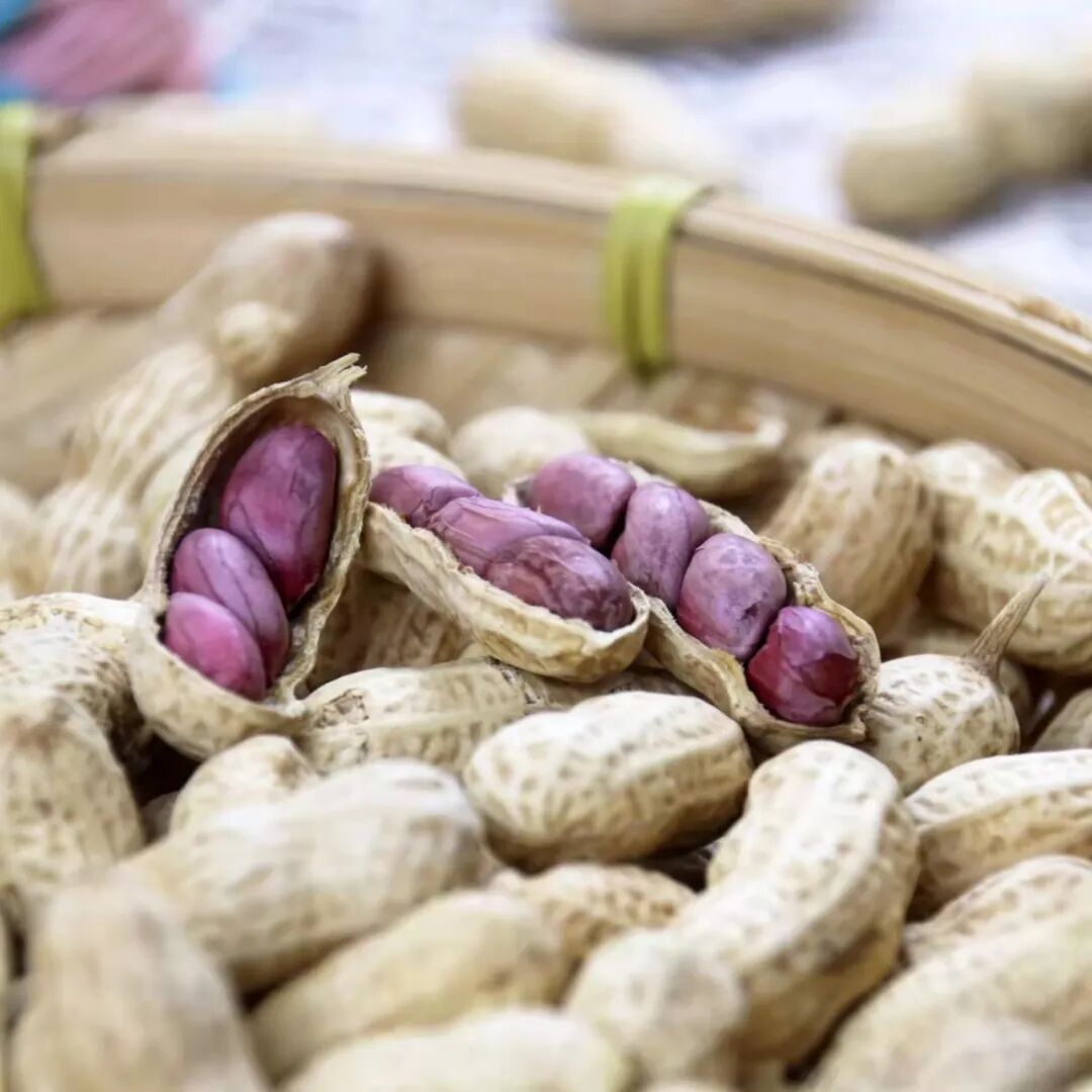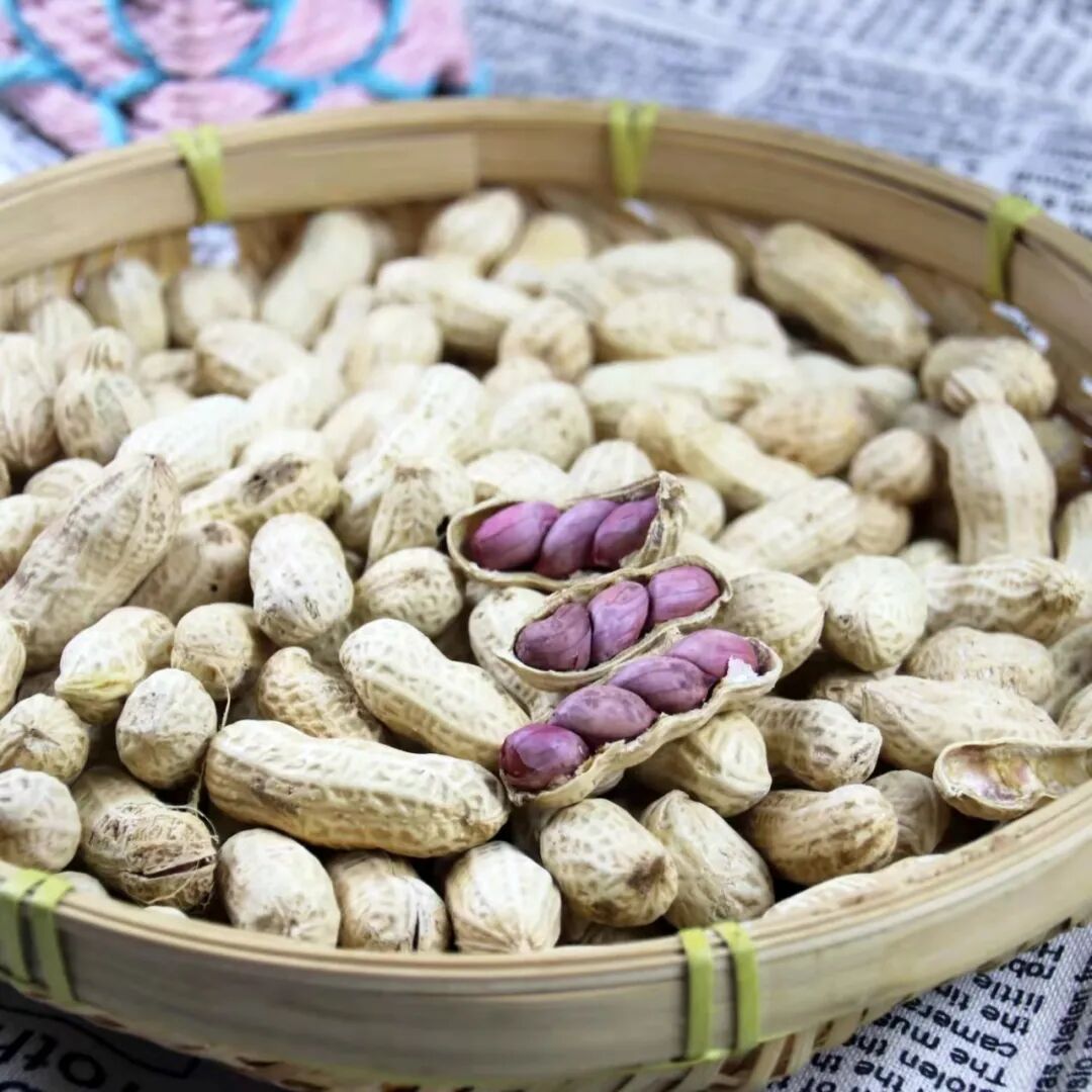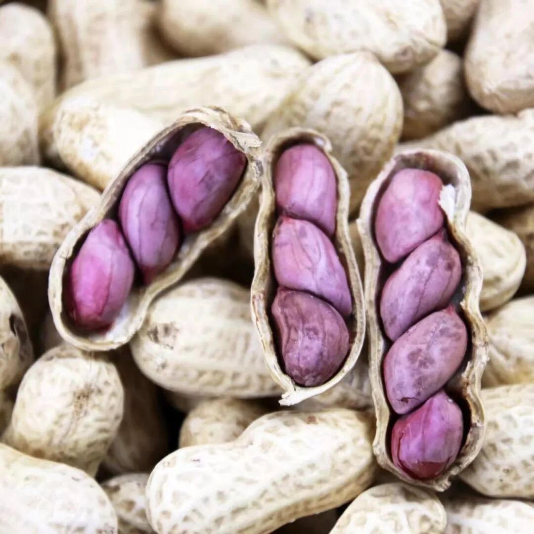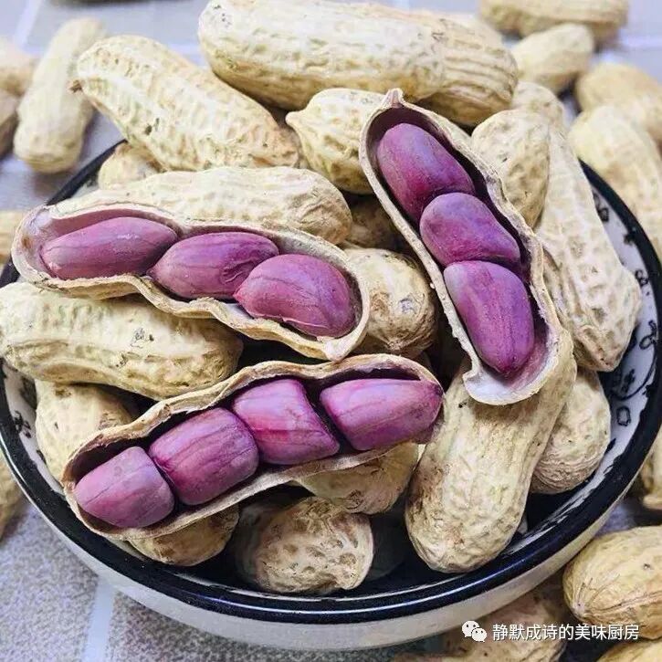 薄薄的紫红皮,饱满的果实,湿烤微咸香脆,好吃不上火。每天吃点花生,和气更生财!