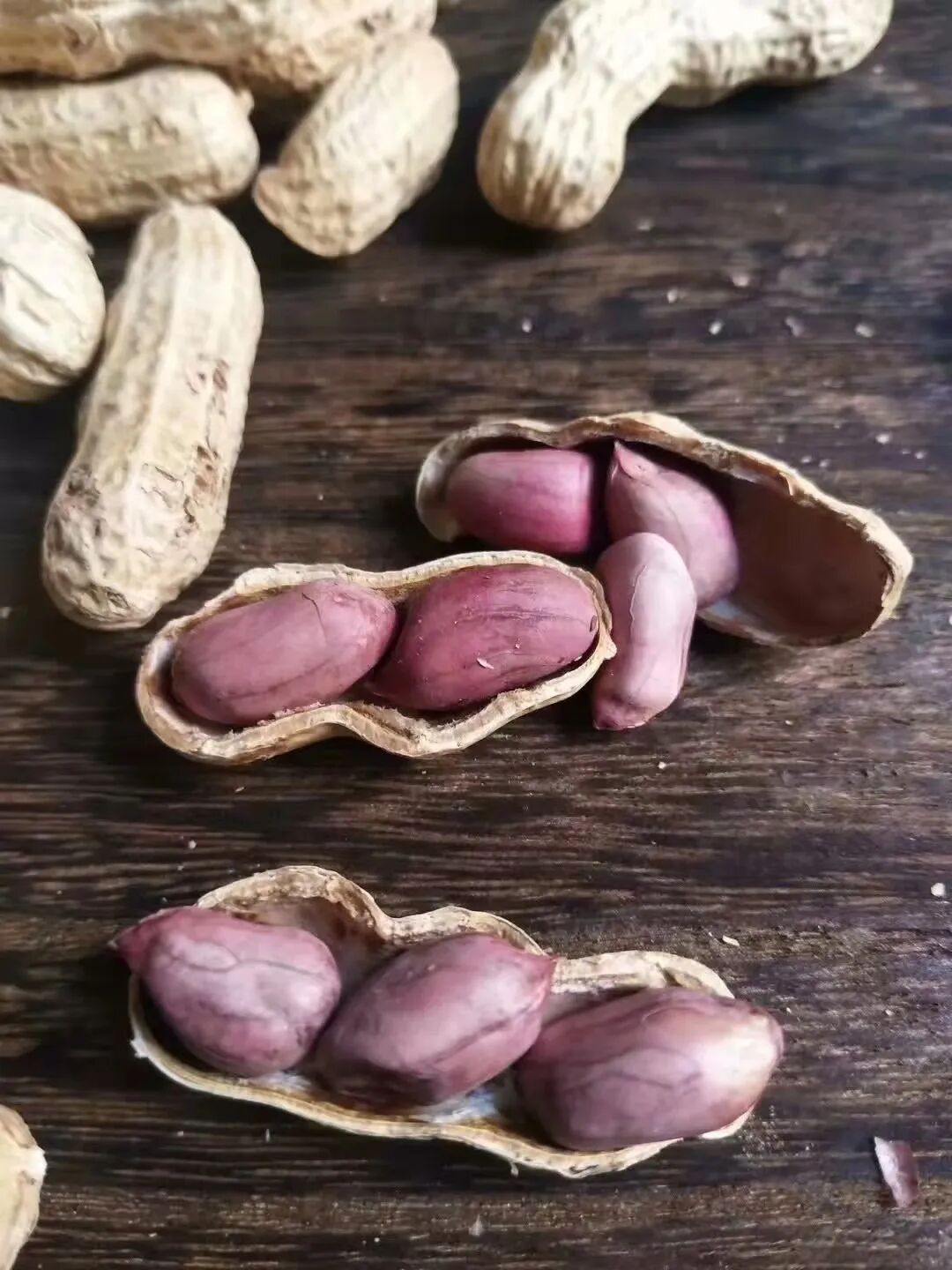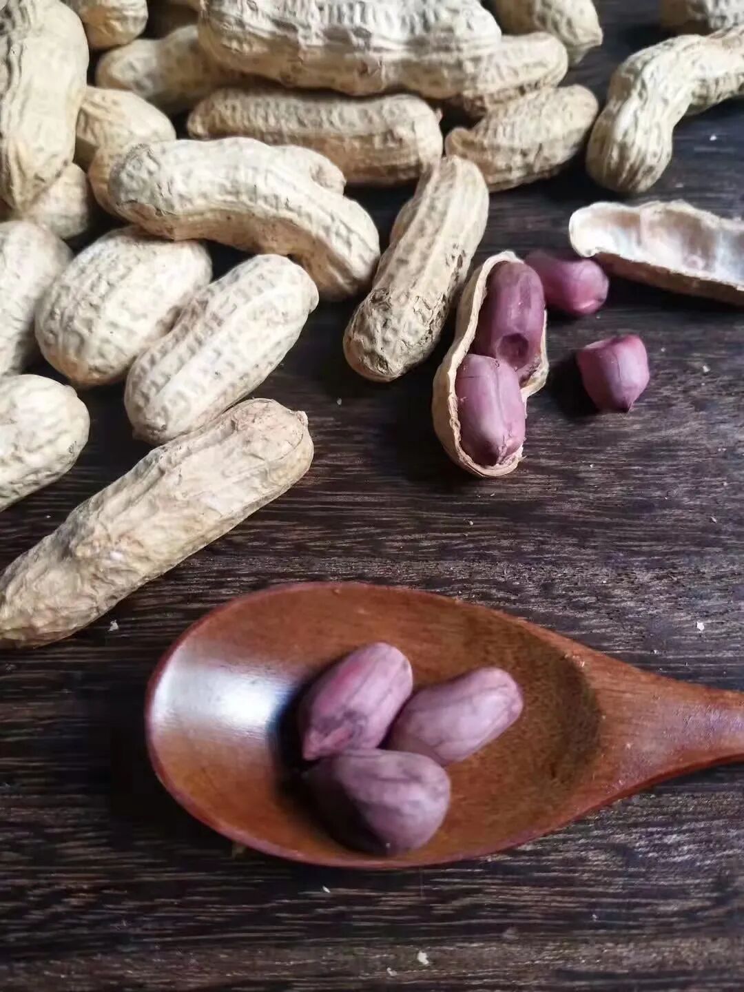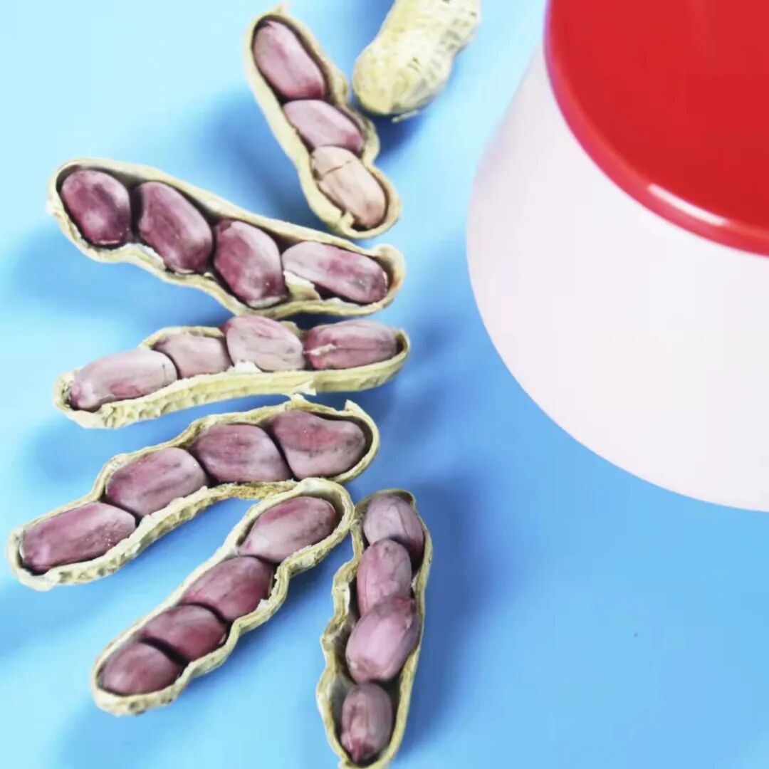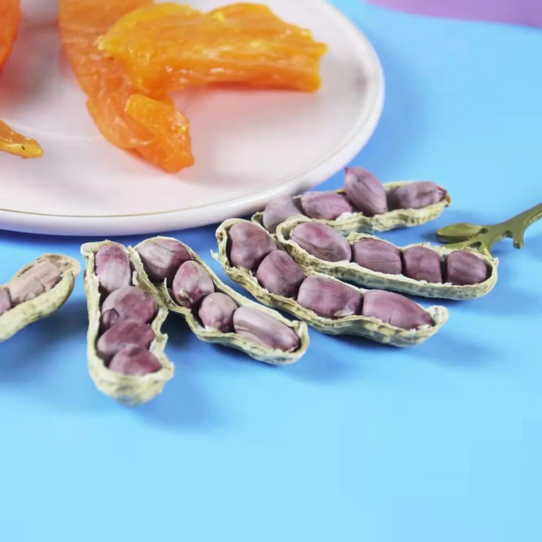 薄薄的紫红皮,饱满的果实,湿烤微咸香脆,好吃不上火。每天吃点花生,和气更生财!