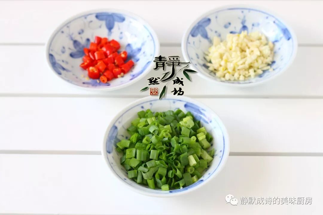2、大蒜、香葱切碎,小米椒切圈待用。