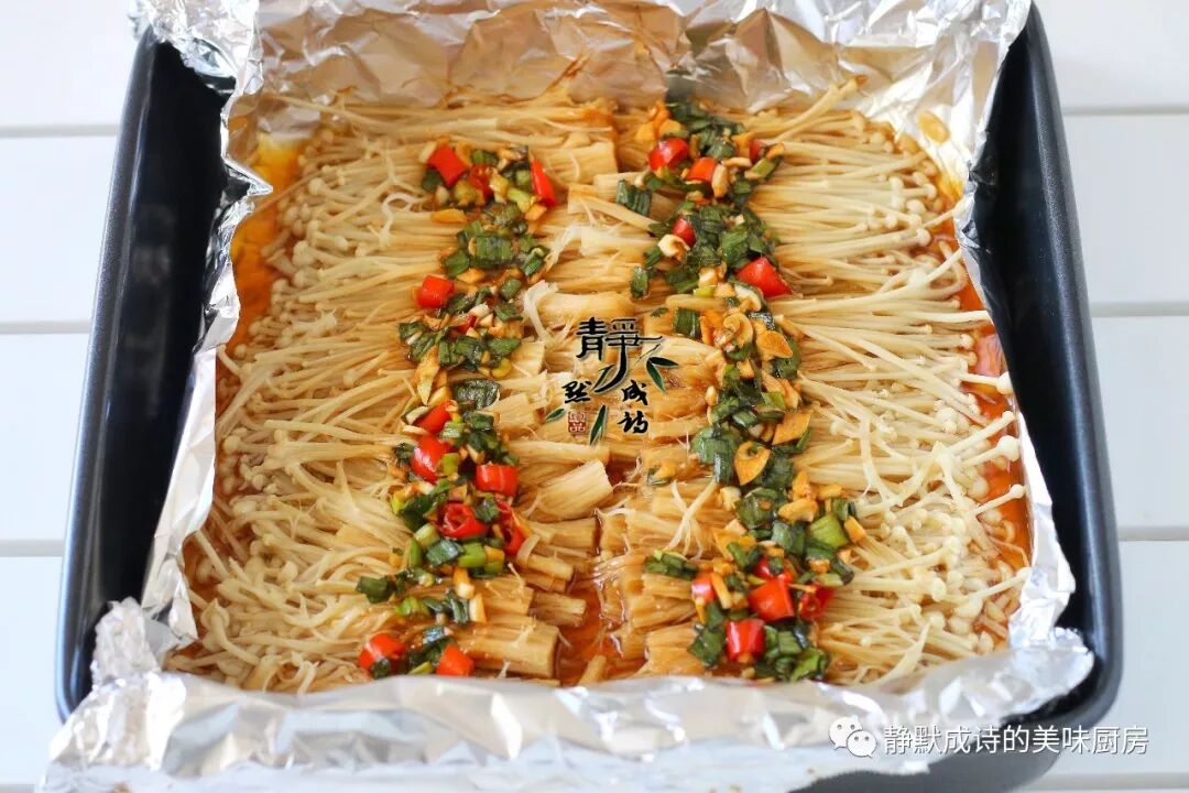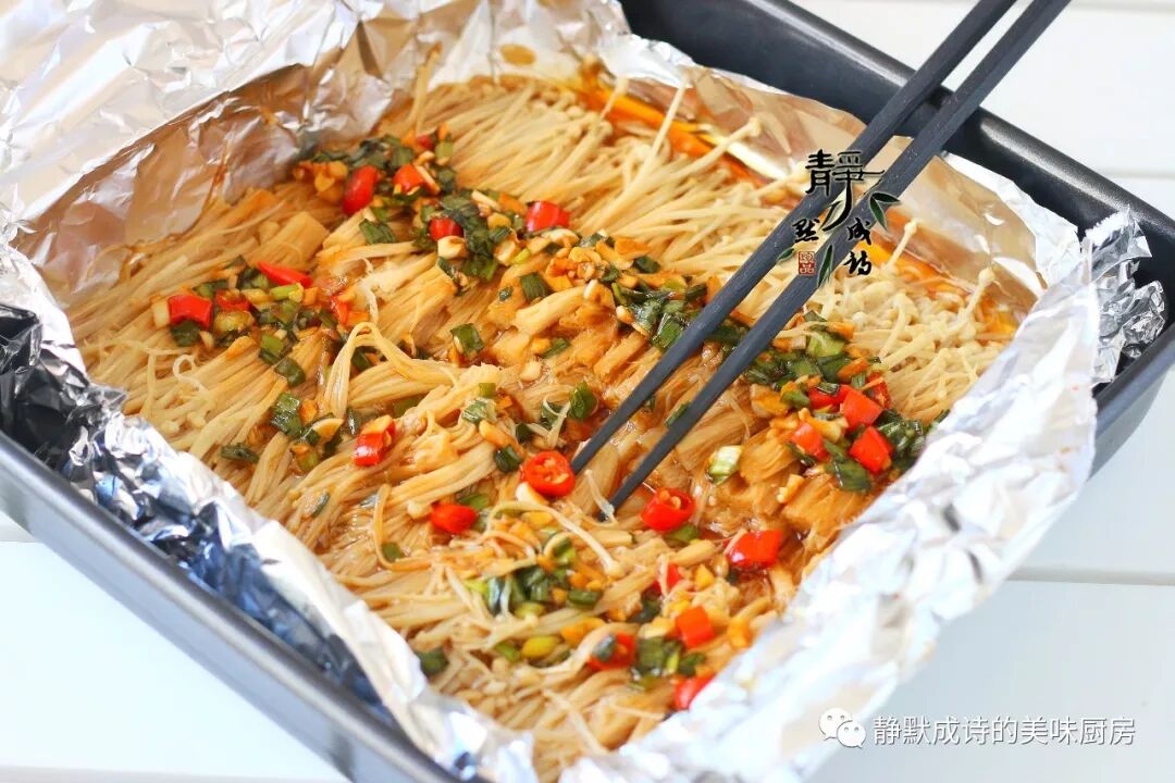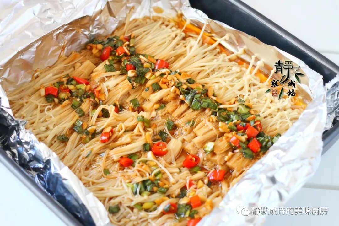 昨天买了非常新鲜的金针菇,今天中午就把它全部入菜了。我没凉拌也没有涮火锅,我用锡纸把它包好放进烤箱烤熟了吃,低脂低盐,味道别样鲜美。烤箱菜,做法都不难,但味道可是一流。
