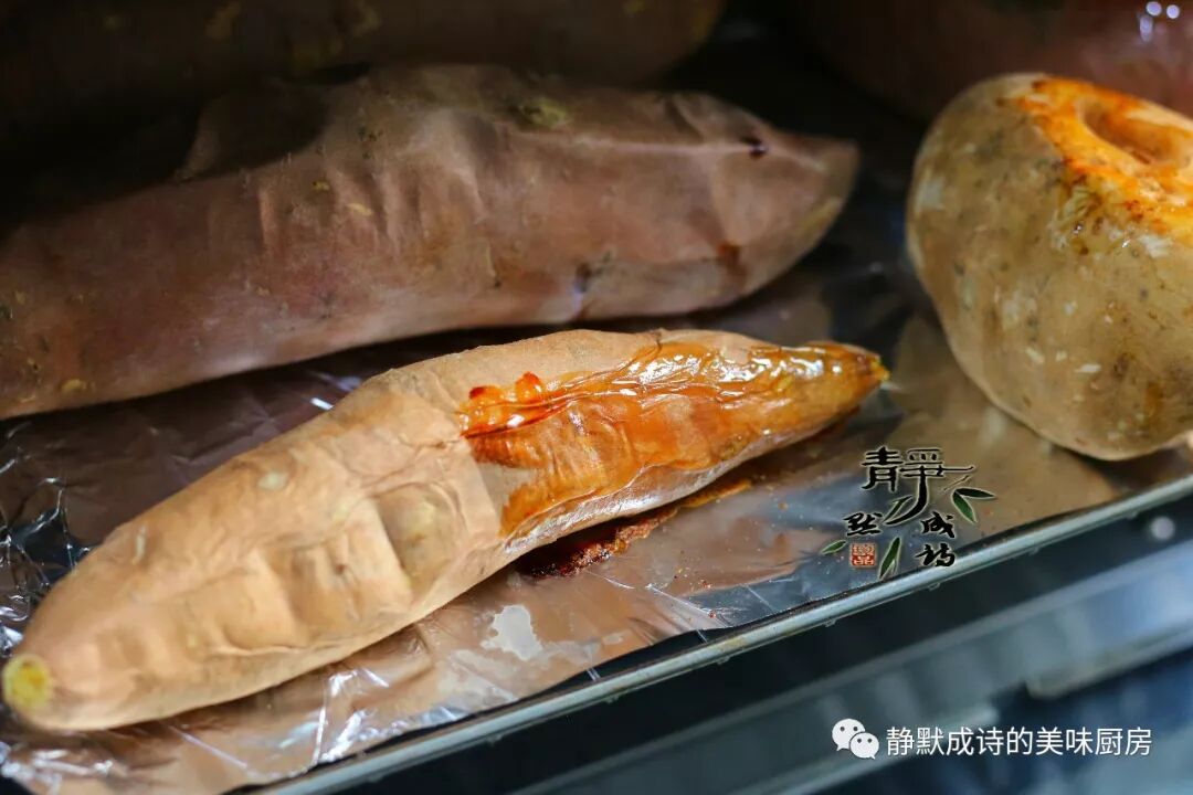 没想到的是,自己用烤箱烤红薯,比大爷用炉子烤的还香甜好吃,蜜汁也更多。