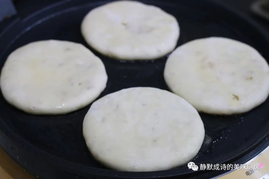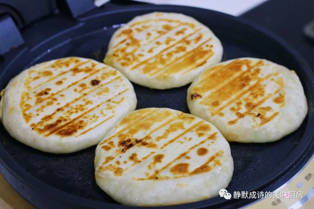 12、把它烙熟即可,我用的“烙馅饼”档,期间不用翻面。大家最好是包几个烙几个,不要提前全部包好,防止白菜继续出汤导致失败。