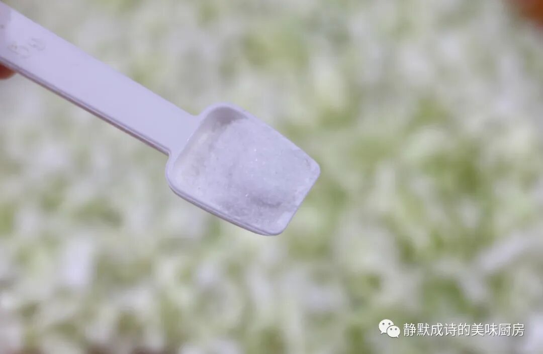 5、切碎之后加入少许盐,接着把白菜剁一剁,同时杀一杀白菜中的水分。