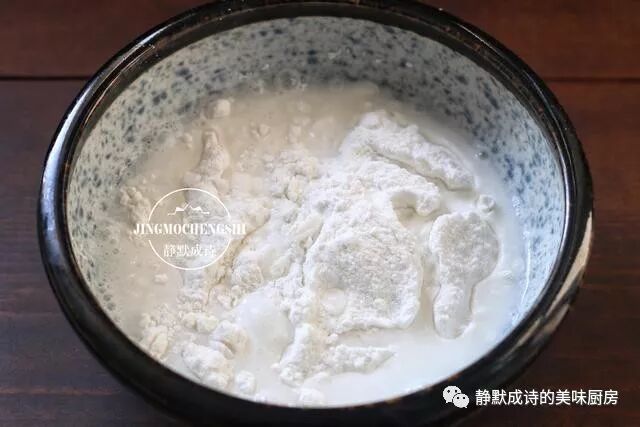 1、首先把清水慢慢加入糯米粉,边加边搅拌,直到没有干粉。