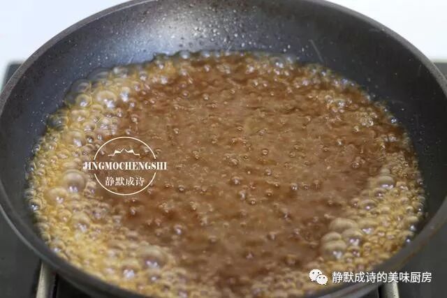 7、锅底余油,加入100克清水,把红糖倒进去,大火煮开。