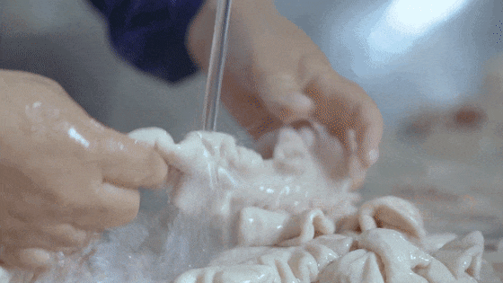 清洗的时候用高度酒反复搓洗,手工去掉肥肠里面多余的肥油,几乎不剩什么油脂, 保证美味的同时又做到了好吃不怕胖。