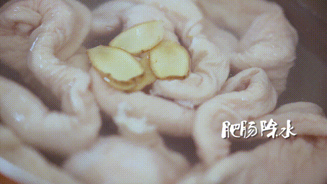 下锅之前放入生姜大料等辅料焯水去腥,这样做出来的肥肠吃起来没有什么异味,唇齿留香,好吃不油腻。