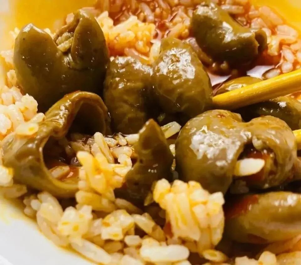 软糯肥肠放进嘴巴里,嚼上几口,满嘴生香,一口一节的肥肠,汁水四溢,又嫩又有嚼劲。
