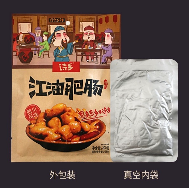 诗乡肥肠铝箔纸包装简直是我们打工人的心头爱,打开袋子微波炉一放,几分钟就做了。