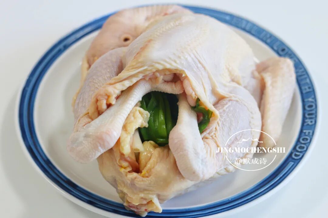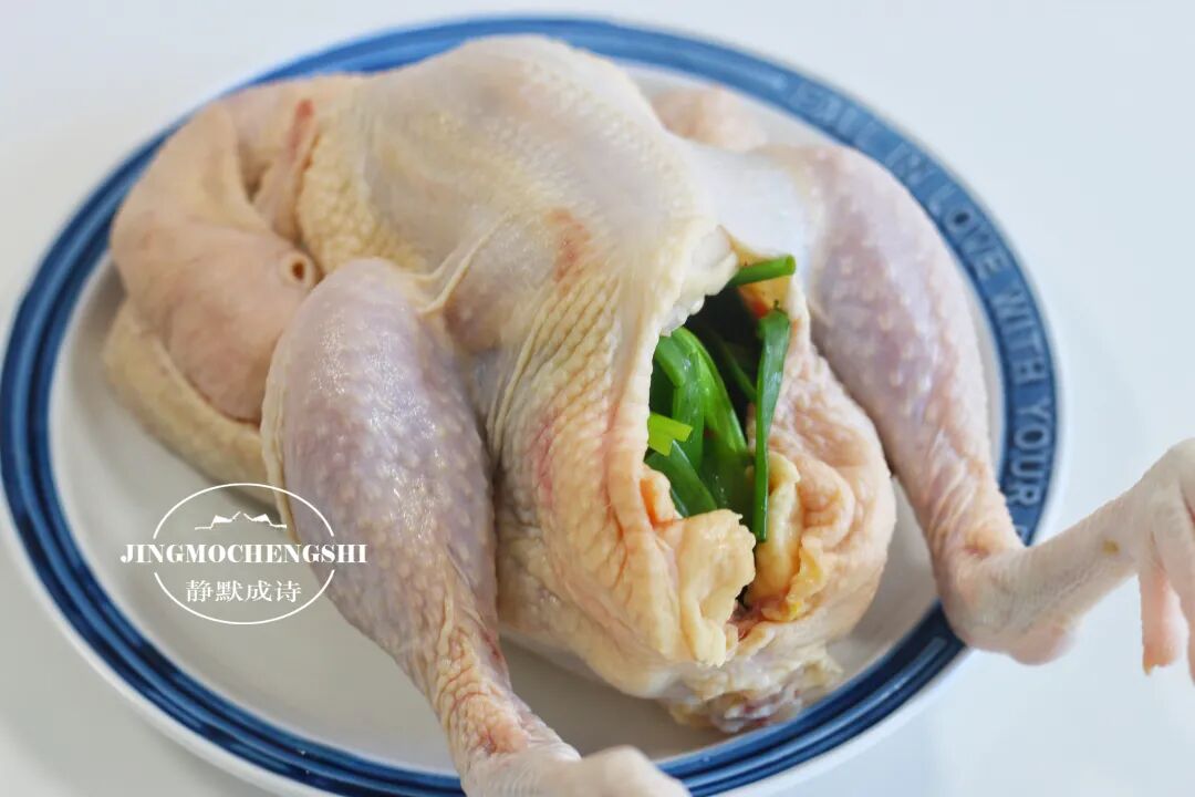 2、这菜是整只鸡来做的,别把鸡剁成块儿了再去烹饪,不然鸡肉会柴。