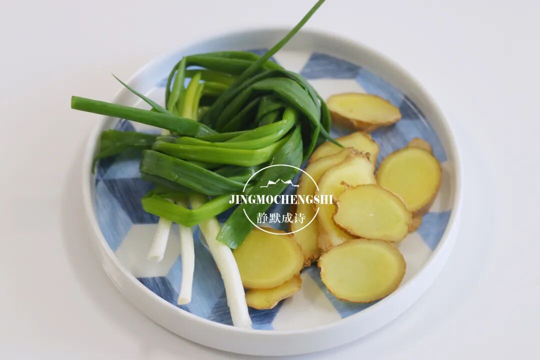 【调味料】:姜1块儿、香葱3棵、鲜酱油3汤匙、老抽半汤匙、蚝油1汤匙、黄酒1汤匙、冰糖1小撮、盐适量。