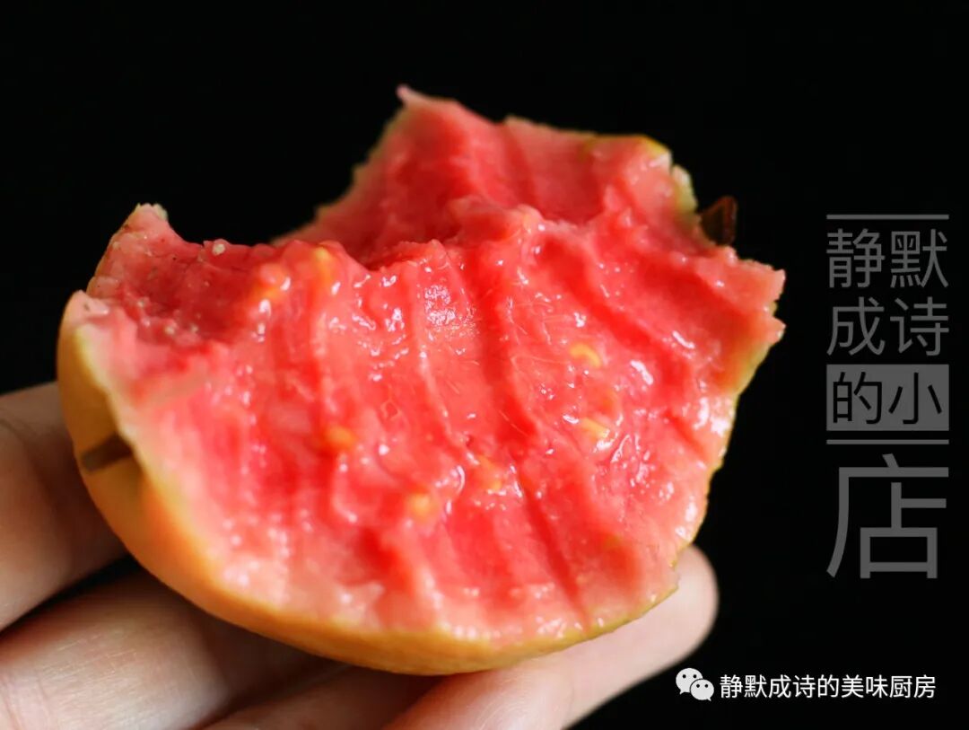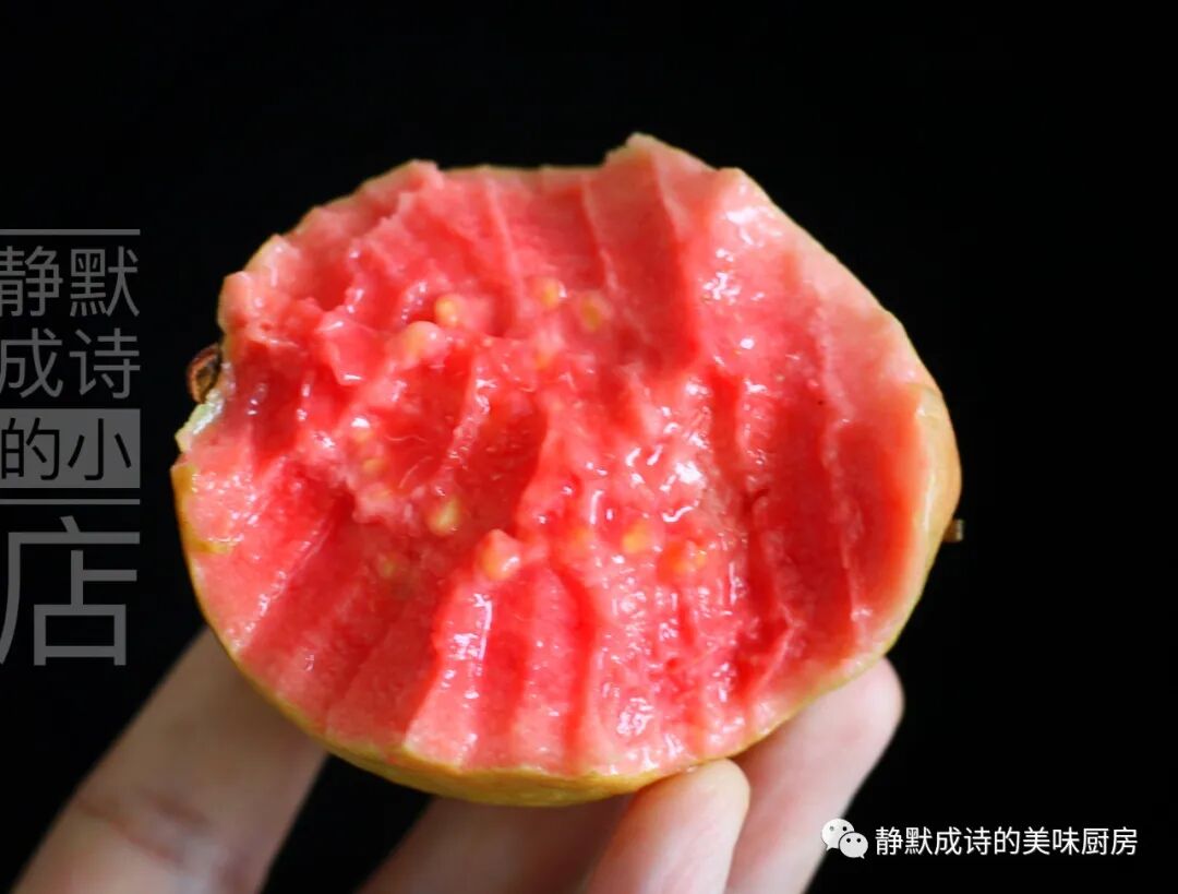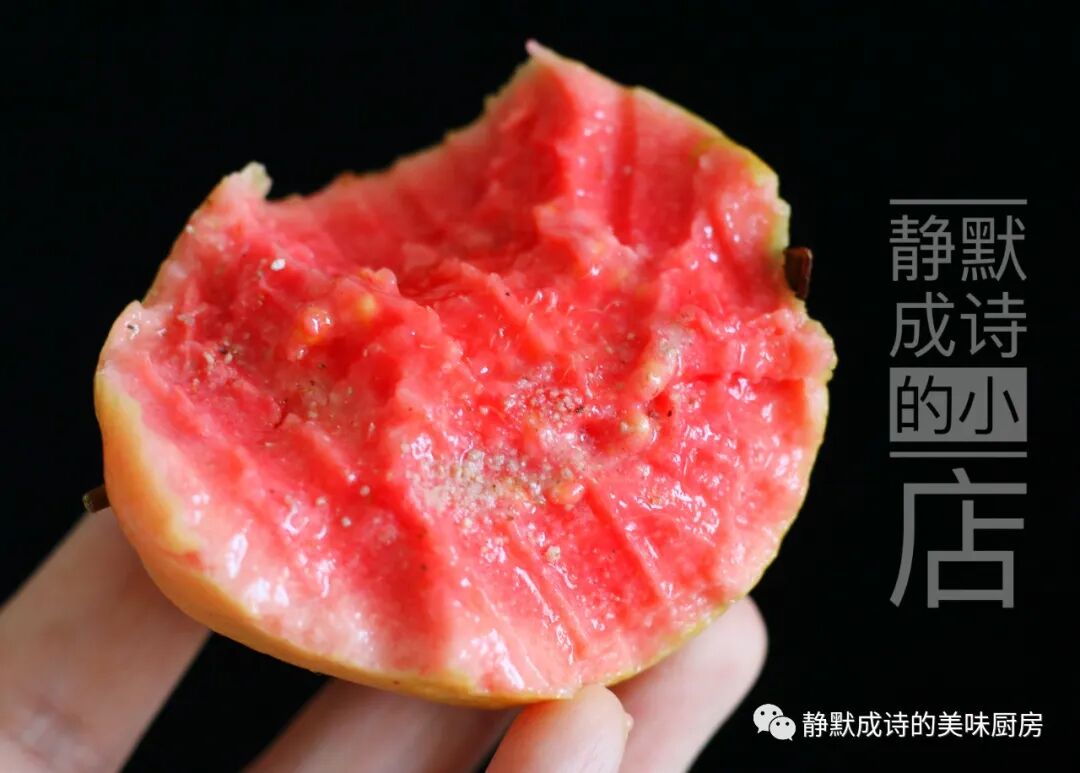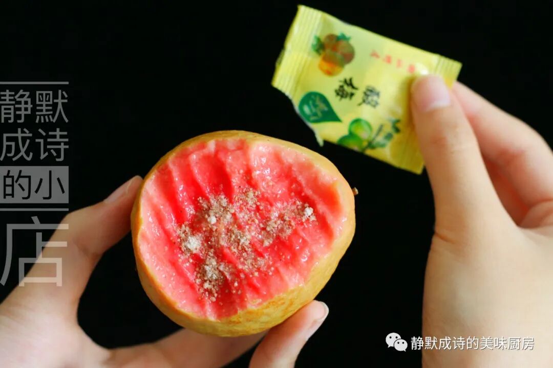 刚刚下树的芭乐,表皮青绿,捏上去是硬硬的,这个时候,可以切块儿,撒上酸梅粉拌匀了开吃,口感清脆,酸酸甜甜,这也是许多福建人和两广人喜欢的吃法。