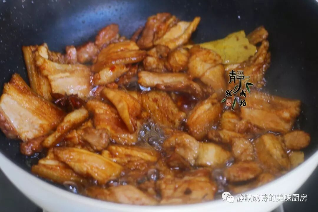 2、做这道菜,一定要用五花肉才好吃,而且是带皮五花肉。用冰糖炒个糖色,给五花肉上上色,成品更加有食欲,但一般家庭在制作时,往往会省略这一步。