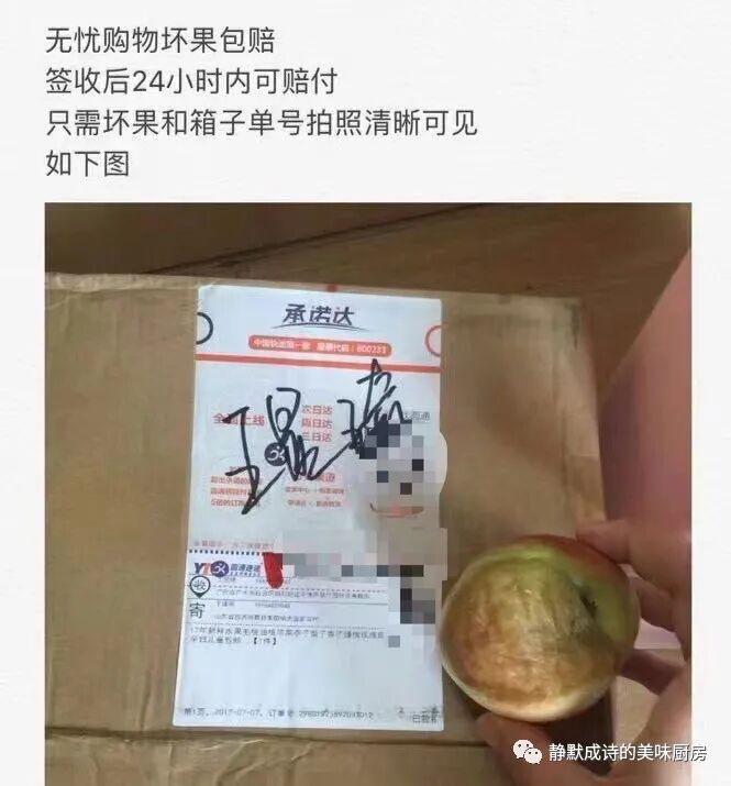还有一点要提醒大家:收到水果后,先不要急着扔掉快递箱,先开箱检查,如果有坏果(非冻果),把坏果放在快递面单旁边拍个合照售后,无快递面单无合照超时均不售后。