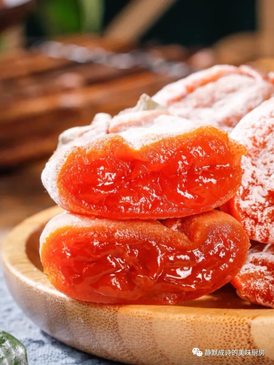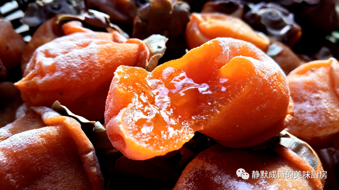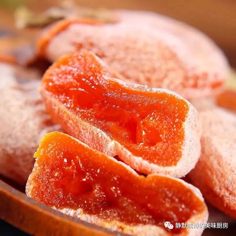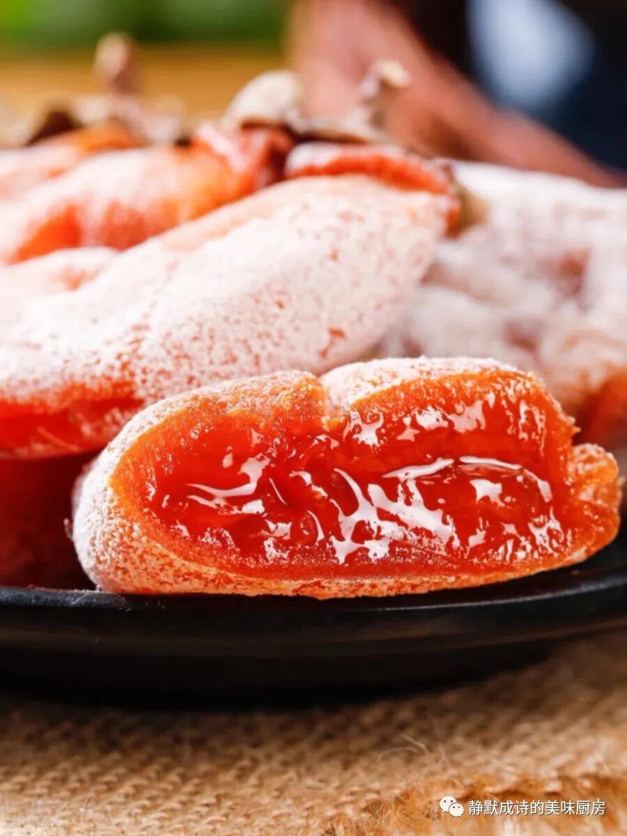 表皮附着沁人心脾的糖霜就算了,富平柿饼还有甜蜜蜜的溏心。
