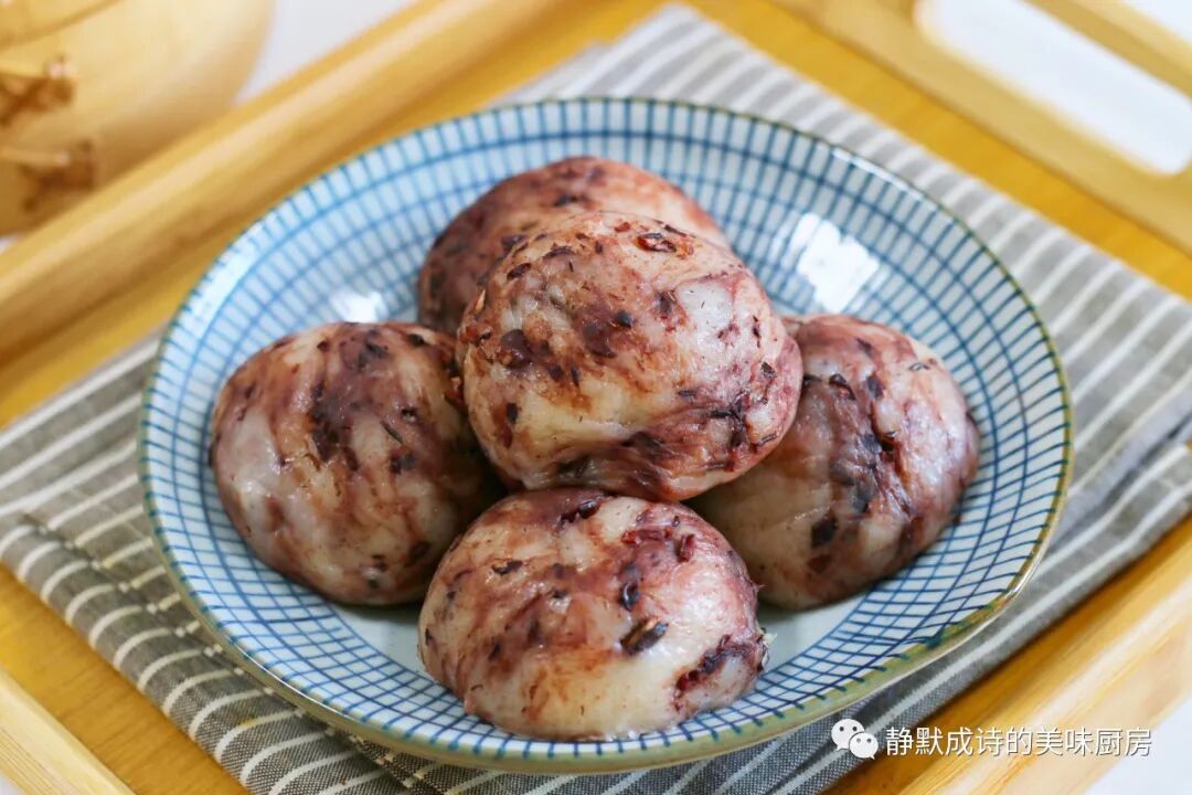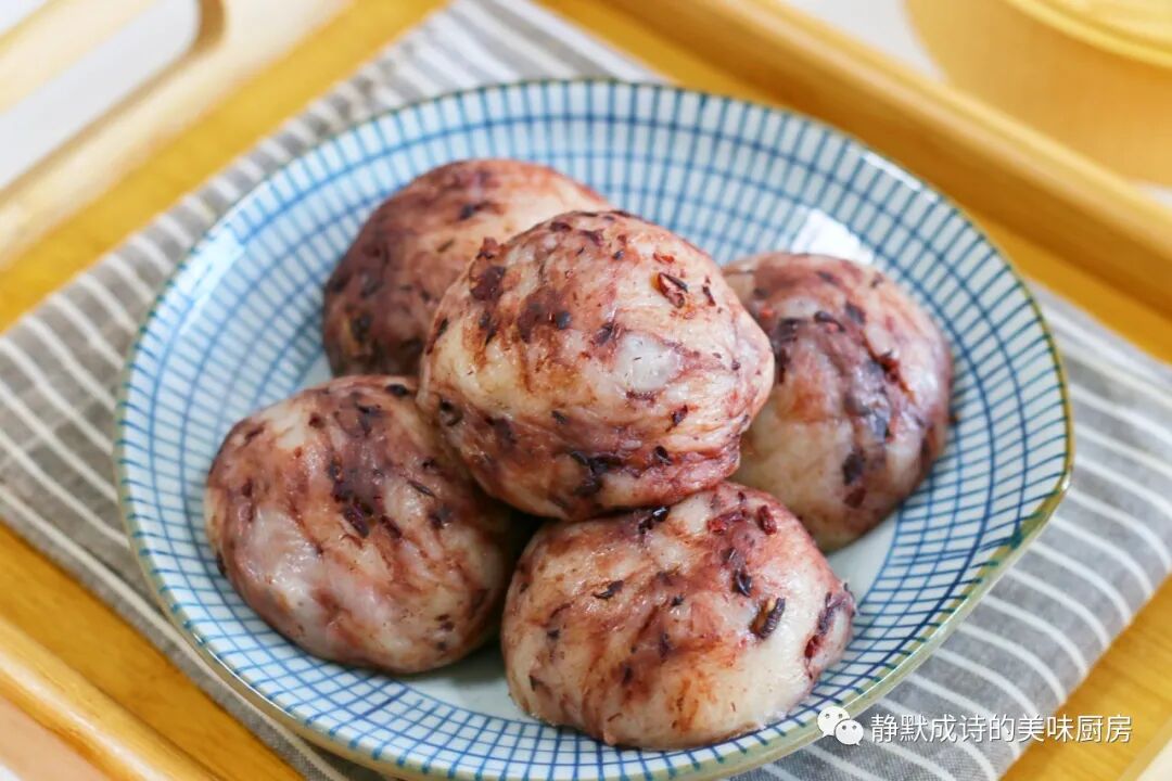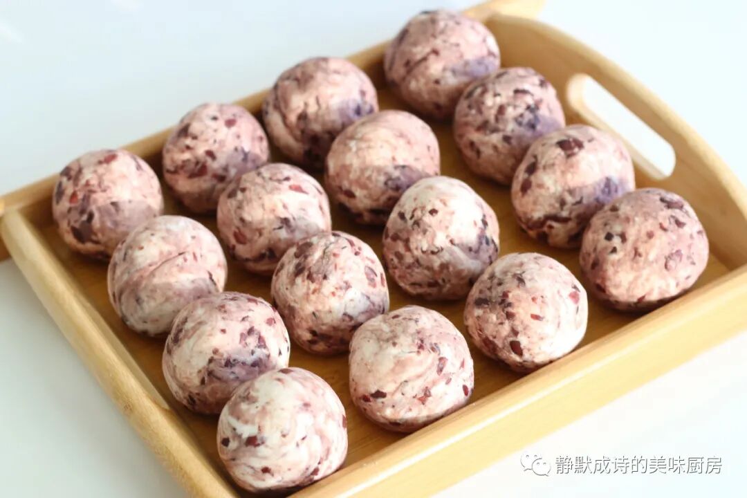 5、然后把打湿的糯米粉攥成球状,大小保持一致。