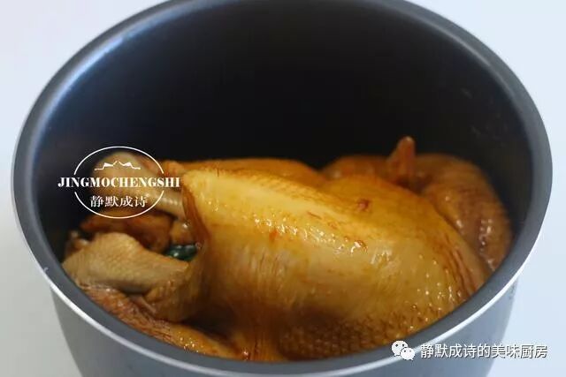 4、对了,鸡肉无需提前腌制,最后蘸食吃的汤汁是酱油鸡味道的精髓。