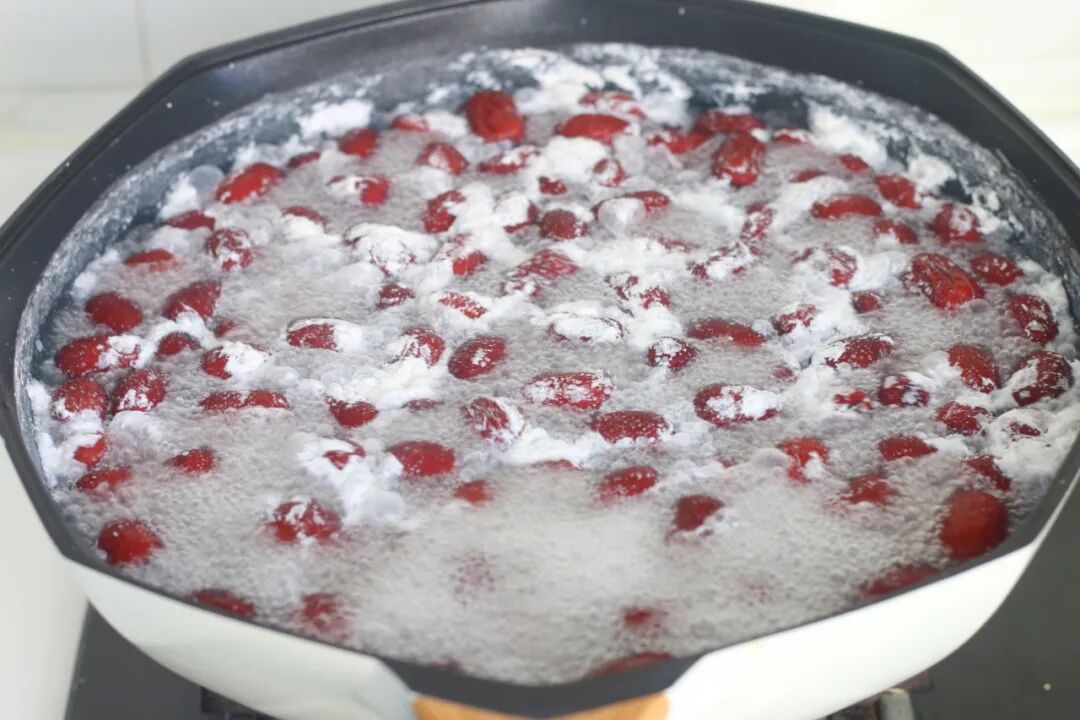 5、红枣在煮的过程中会出现白沫,这是正常现象。待红枣煮至表皮发胀,手一碰就会破皮时即可捞出。