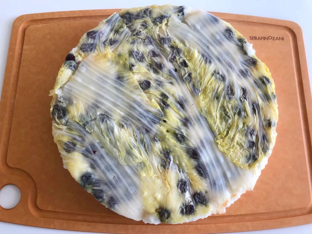 8、关火后要立马倒扣出来,趁热把白菜叶撕掉,晾凉之后才能切块儿。