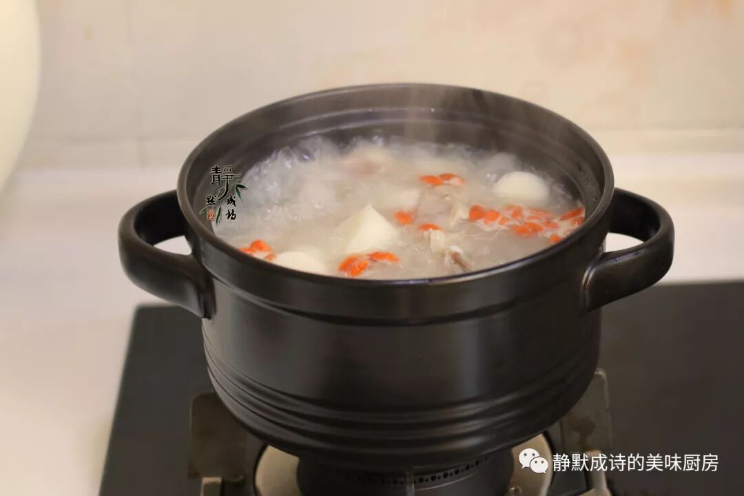 10、汤煲在火上炙烤,热汤在煲中翻滚起舞,羊排山药汤特有的香气在空气中缭绕。看着火上的汤煲和翻滚的热汤,时间仿佛定格,寒冷也仿佛被这煲热汤挡在千里之外。