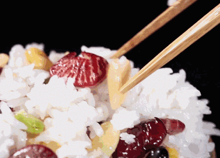 【八宝粥】扁粮、大米和水按照1:2:15的比例,高压锅熬20分钟。