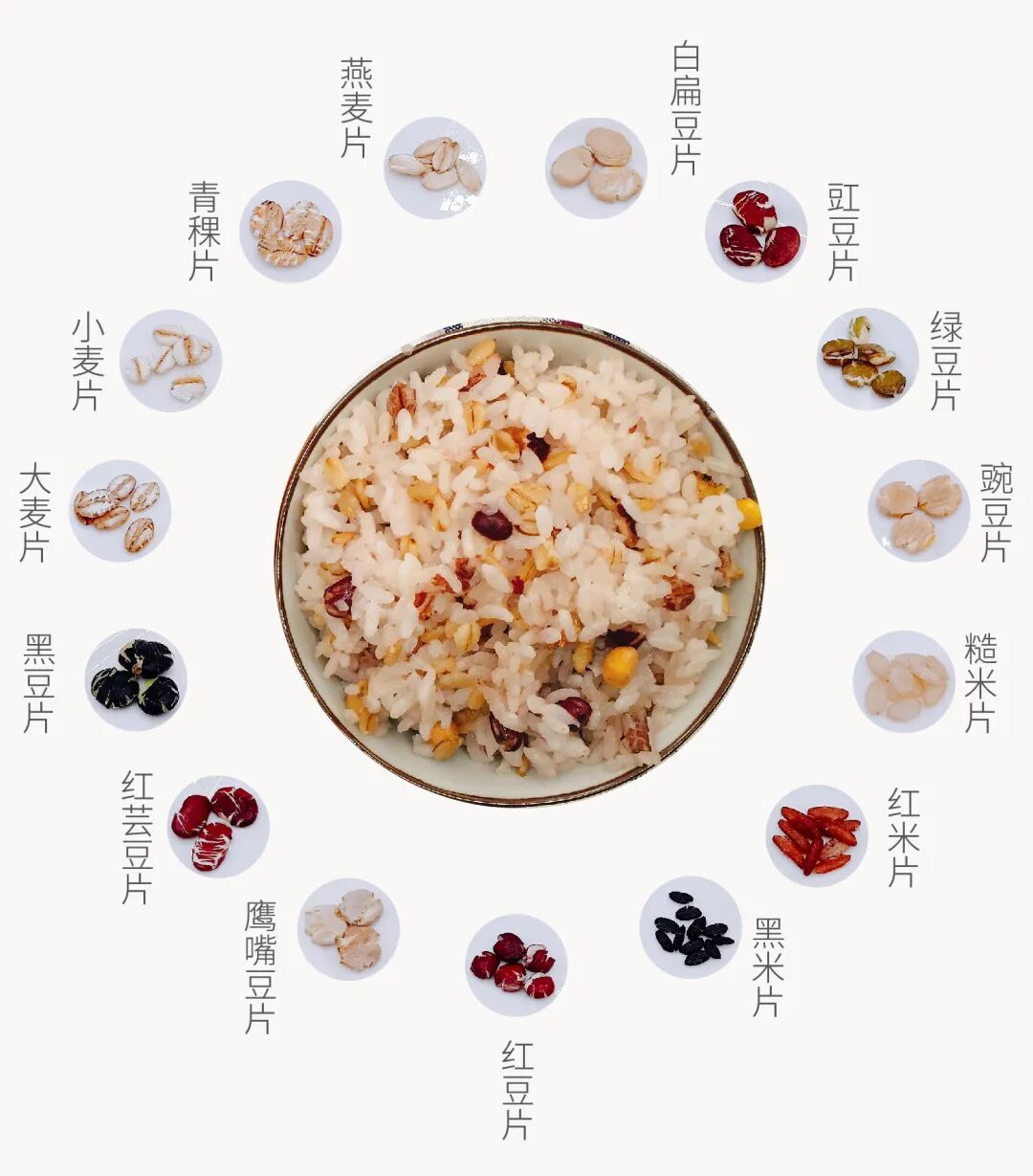 1.五色补五脏:五色白青黑红黄,滋养肺肝肾心脾,15种谷物,营养更均衡;