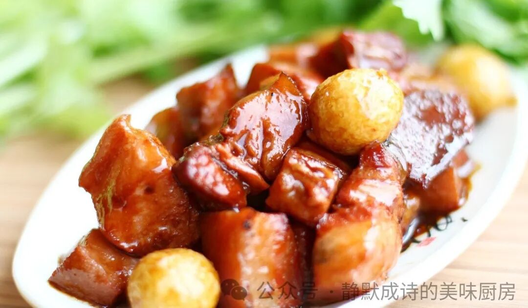 4、红烧芋头:将芋头去皮冲洗干净,切滚刀块。锅内坐水,将芋头加入煮至七八成熟捞出。起油锅加入白糖,小火熬制,炒成褐色。将芋头加入,翻炒均匀。加入酱油、少量老抽、盐,充分炒匀。向锅内加入水,没过芋头,中小火煮几分钟,使芋头充分熟透。汤汁变浓稠后大火收尽汤汁即可。