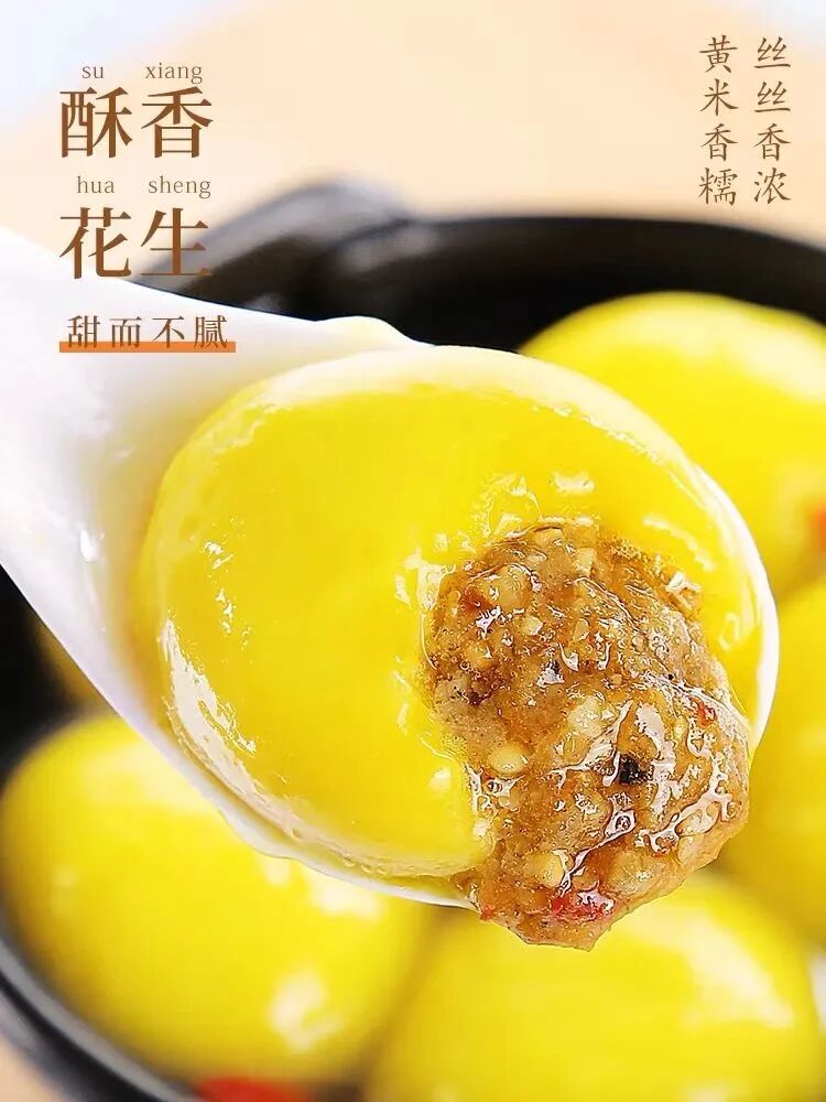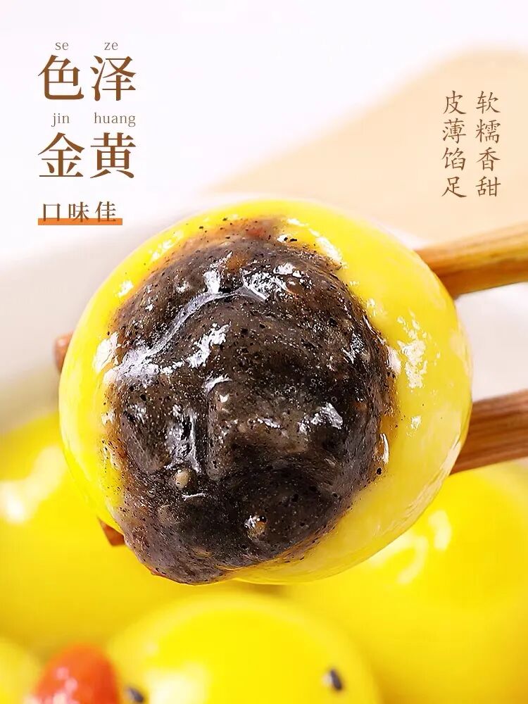 金黄软糯的黄米皮里包裹着芝麻、花生等多种馅儿的馅料,浓浓的五谷香气,萦绕鼻腔,吃下去就是满满的幸福感。
