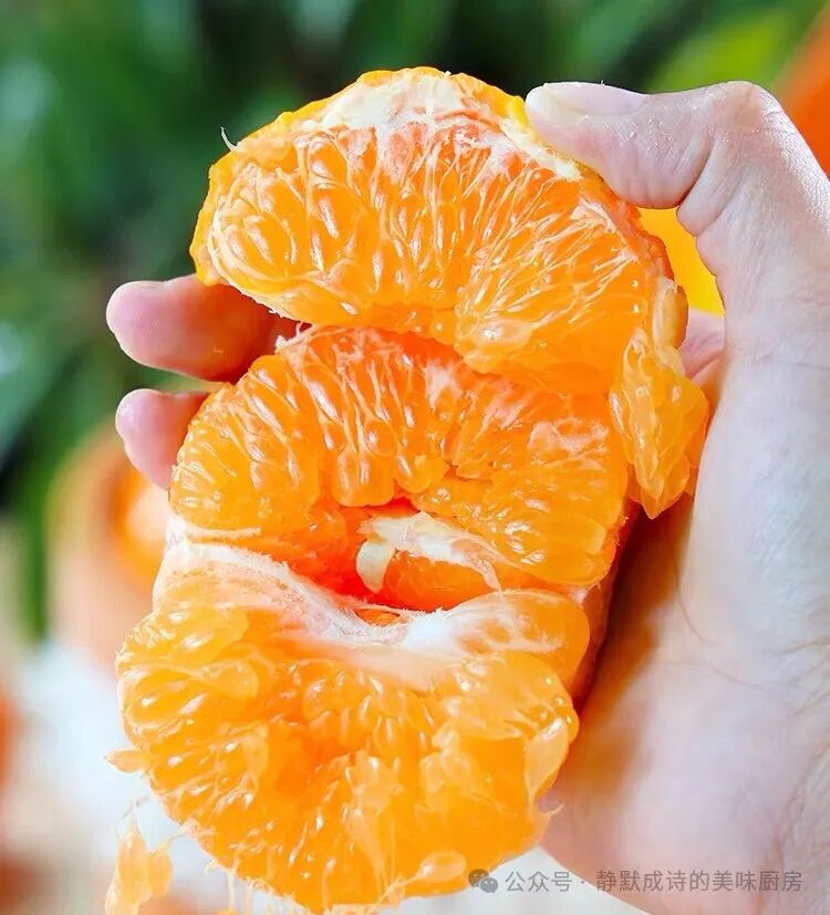 说一件有意思的事情。春见在我国多地都有种植,但最好吃的春见耙耙柑产自四川。因为成熟的春见果肉与果皮会分离,形成中空的现象,加上皮薄,所以捏起来是软趴趴的手感,所以四川人叫它“耙耙柑”。这里的“耙”与四川“耙耳朵”的“耙”同义。