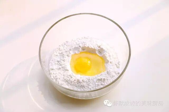 2、取适量面粉放大碗里,加点儿盐,磕入鸡蛋。