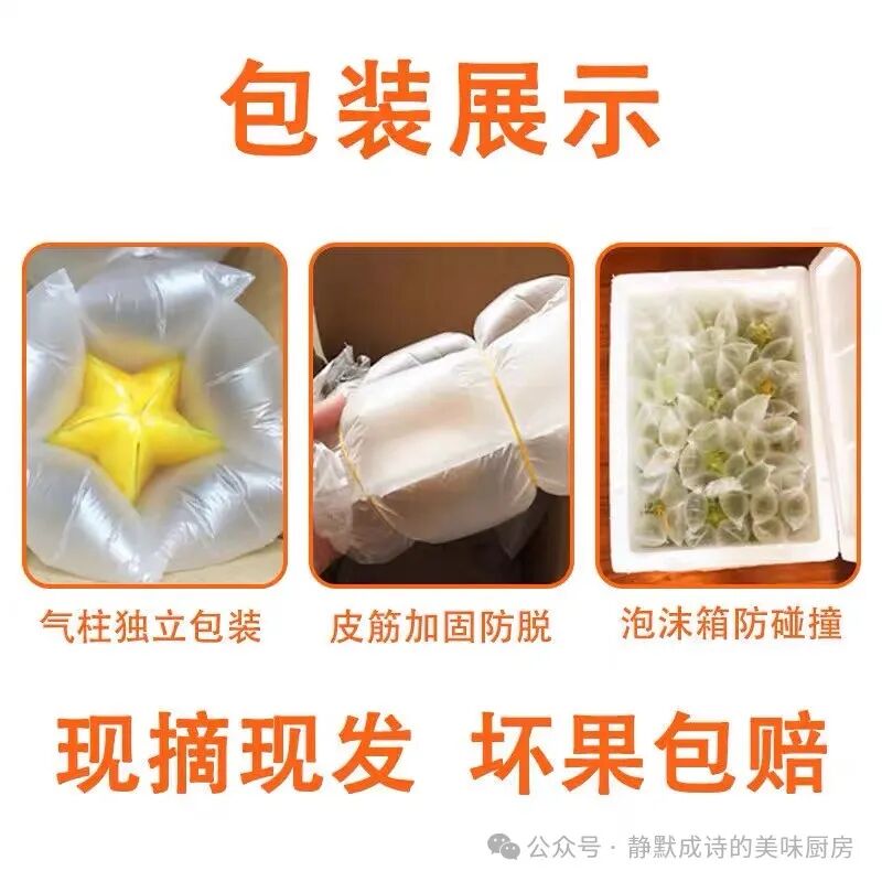 为了保证每一个漳州下河杨桃都能新鲜完好的送到您的手中,果农们精挑细选,再一个一个装进保鲜袋和气柱袋,并有泡沫箱装好,保证您收到的都是品质优质的漳州下河杨桃。