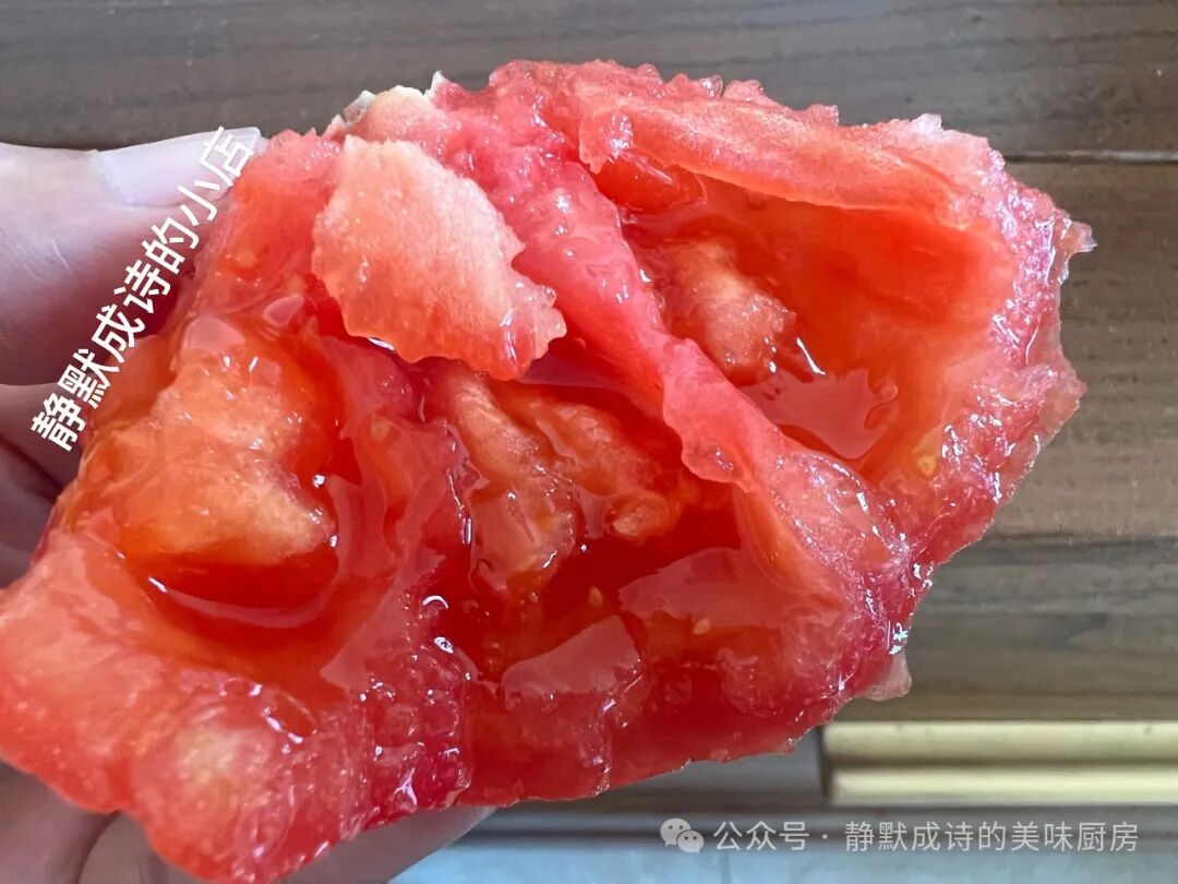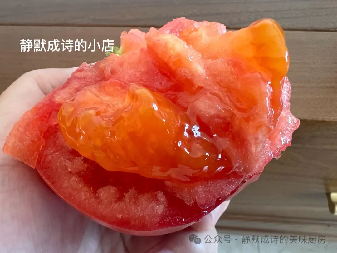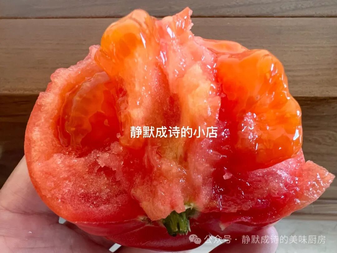 掰开西红柿,那种浓郁的西红柿的味道就扑面而来,没有一丝保留,那种儿时熟悉的气息,让人感动。