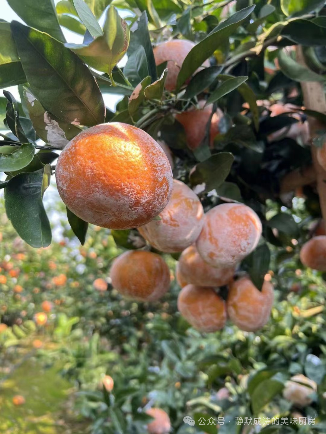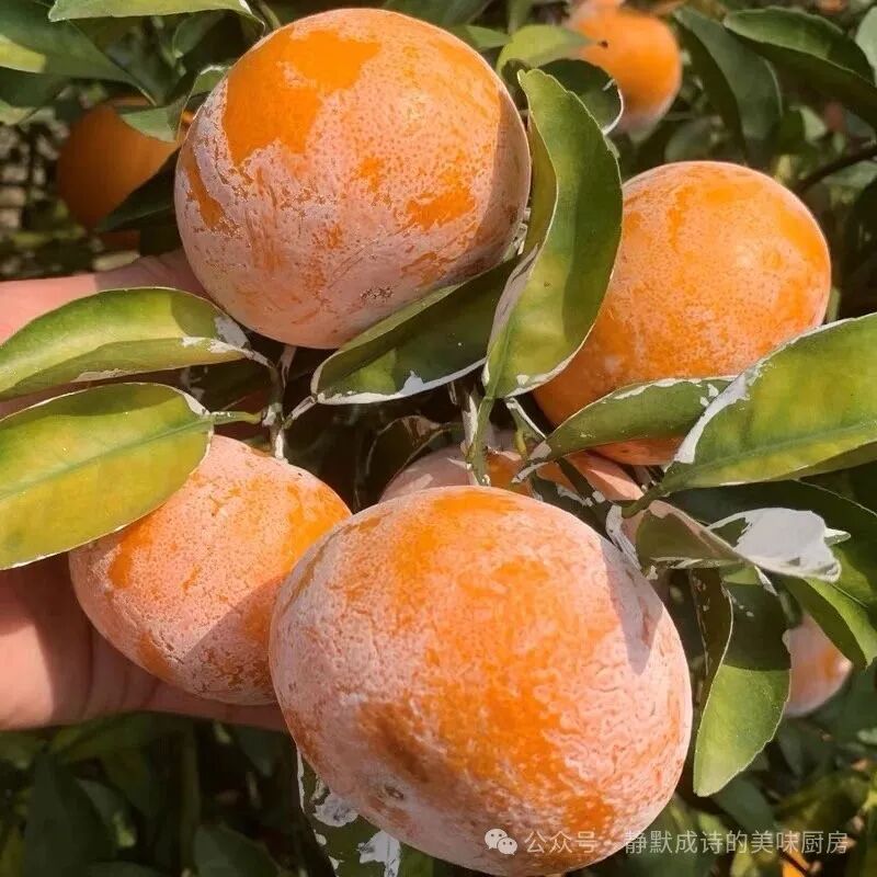 茂谷柑是晚熟品种的柑,每年春天成熟。若是初见,会被它脏脏的外表吓到:这果子表面一层灰,是发霉了吗?还是农药残留?其实,都不是,这层像极了霉斑的“脏东西”是石灰。在茂谷柑的种植过程中,会用到石灰,它有两个作用:一是防晒二是防虫。