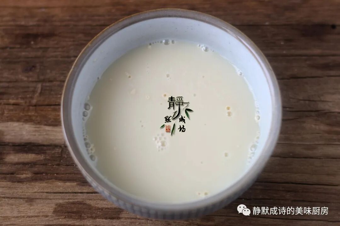 3、把酵母用温水化开待用。水温不能过高,以不烫手为宜,不然,酵母中的菌会被高温杀死,酵母就失去了作用。