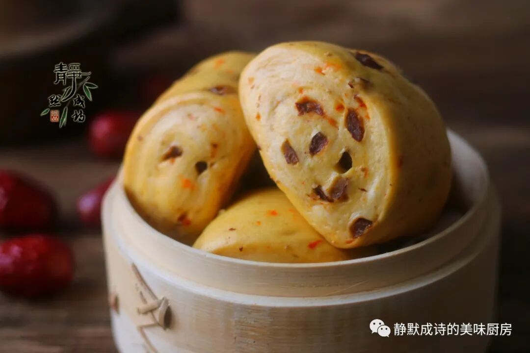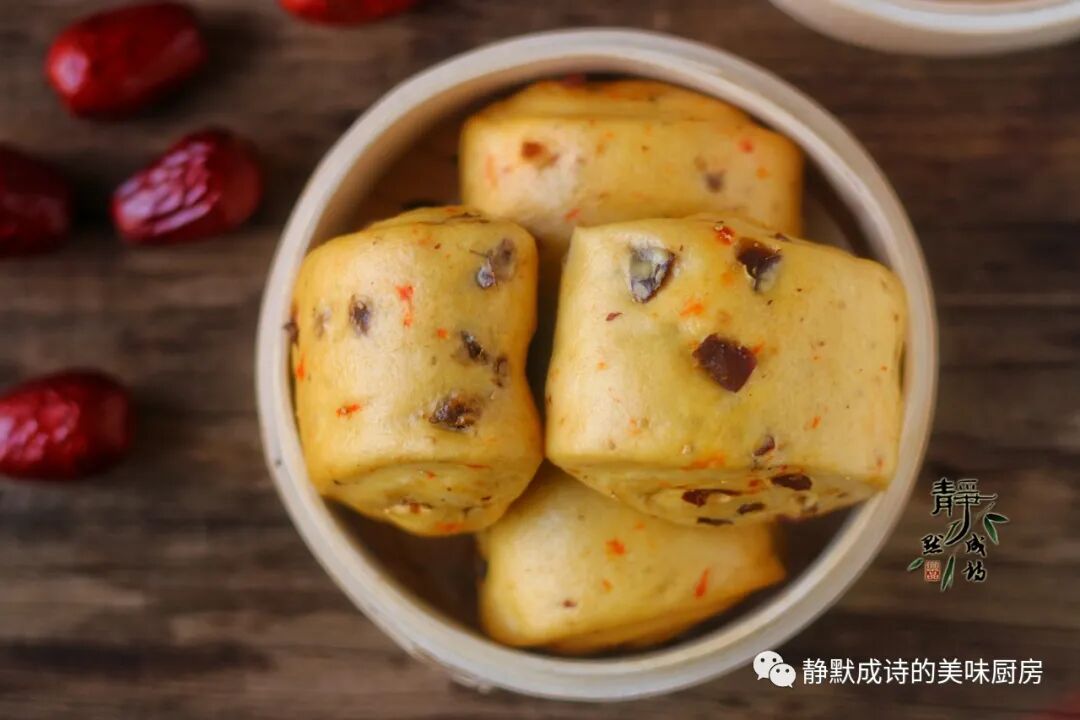 【食材】:面粉300克、红枣十来颗、枸杞1小把、酵母3克、温水适量。