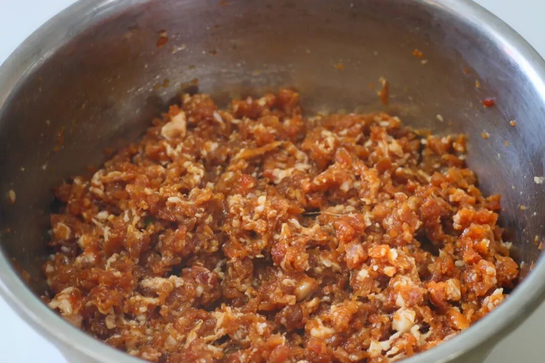 【食材】:猪肉馅儿400克、韭菜600克、酱油2汤匙、蚝油2汤匙、五香粉少许、熟花生油5汤匙、香油1汤匙、鸡蛋1个、盐适量。