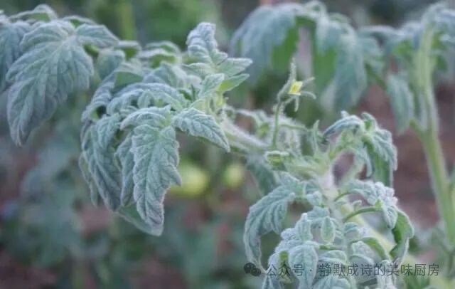 毛粉西红柿,与其他品种的西红柿相比,最显著的特征是,它的西红柿秧上带有一层细细的绒毛,远远看上去,就像是挂满了一层白霜。这一植株特征,是其他西红柿品种都不具有的。