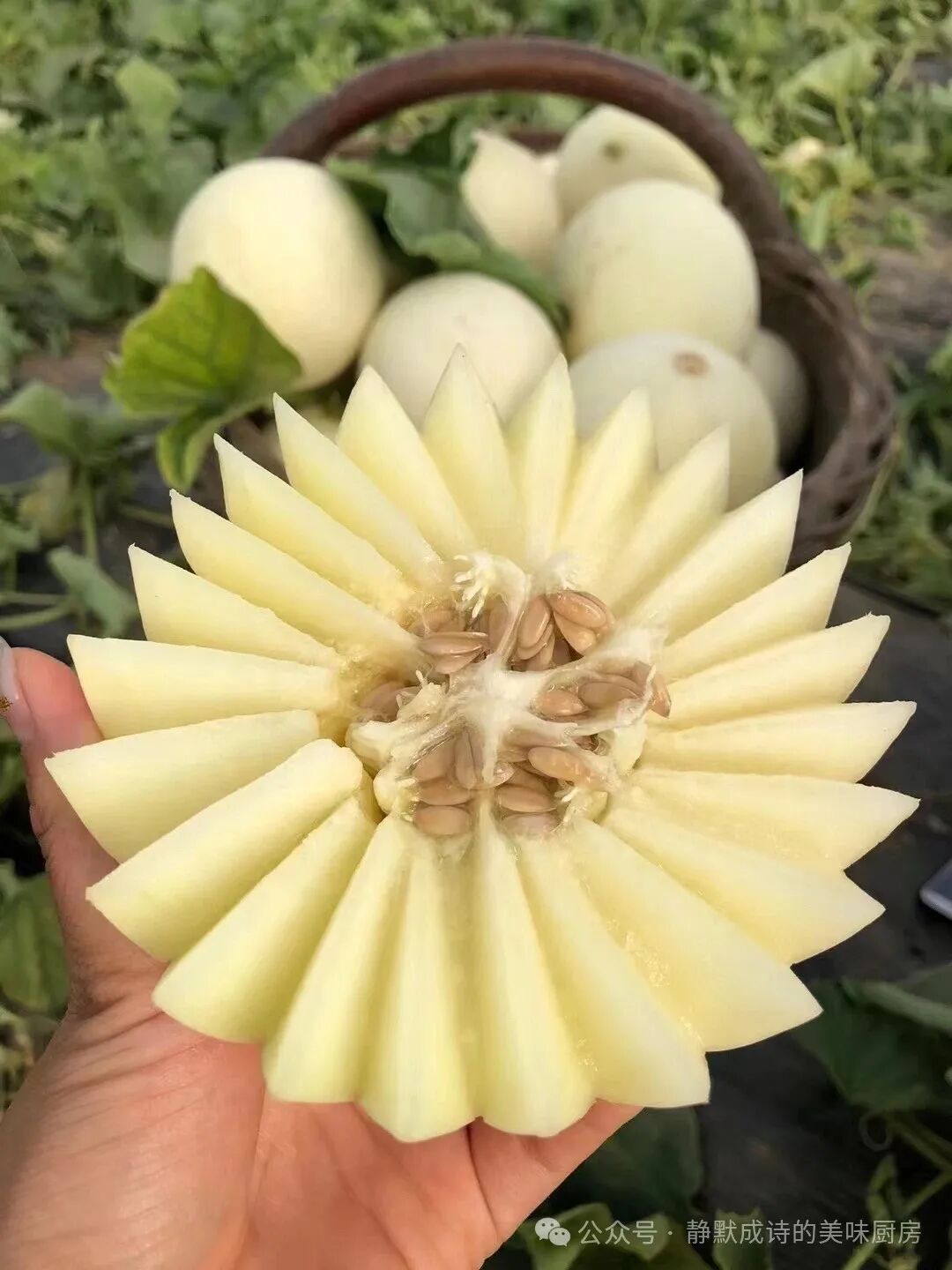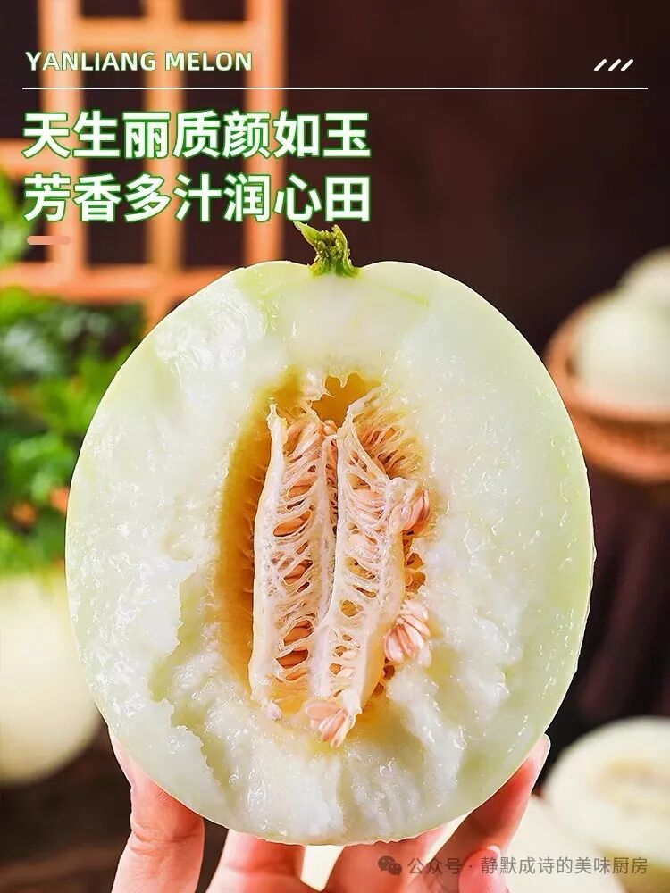 阎良甜瓜,表皮呈现白色,果肉软糯,甜度15-18,最高的能达到21。在当地的甜瓜市场,稳居拿货最高价,和小蜜蜂甜瓜一样,阎良甜瓜也属于小体积瓜。有些顾客不懂,收到后评论说“甜瓜很好吃,但就是个头不大”,它本身就是小体积甜瓜,想要大的?抱歉,我们没有。
