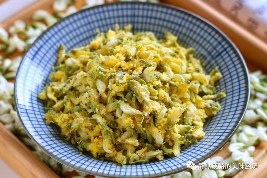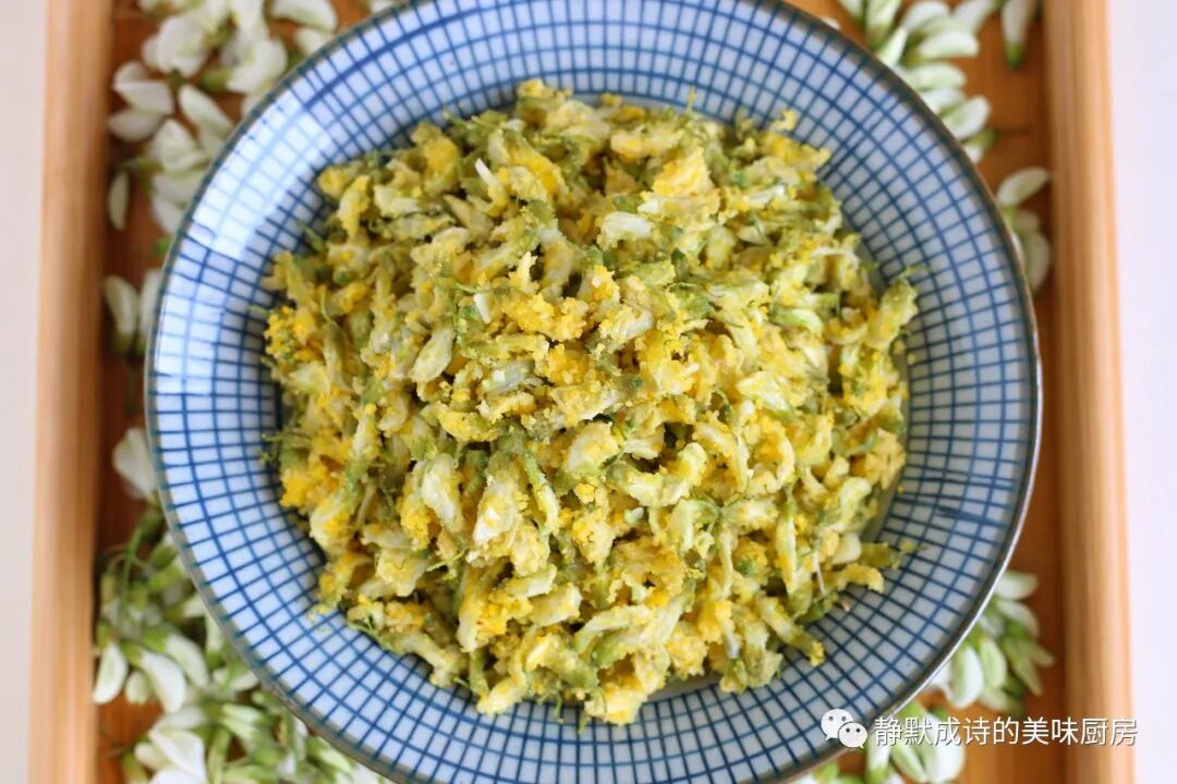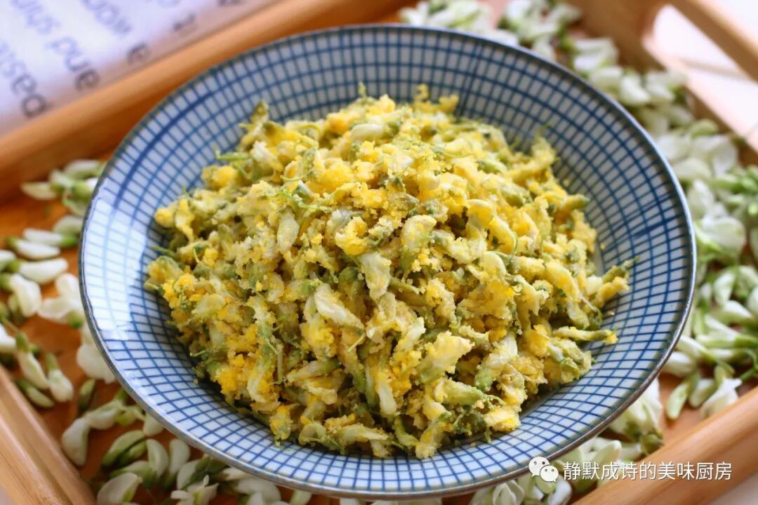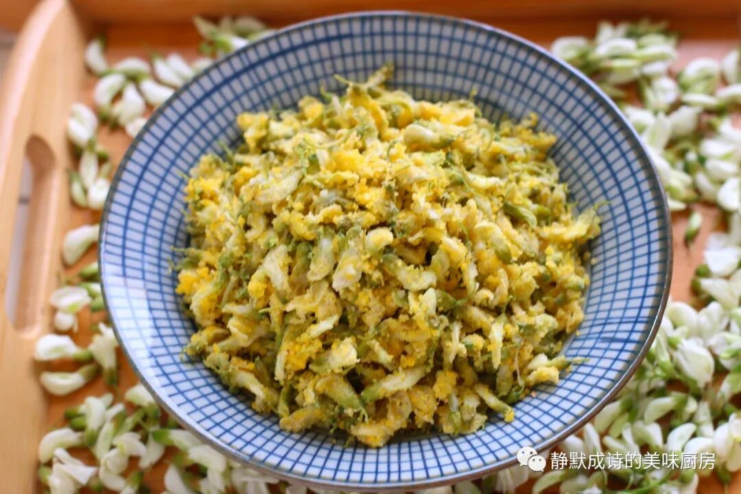 年复一年,对槐花的喜食程度并未有半分衰减。盼望着,盼望着,它终于来了,在四月末,终于又上了我家的餐桌。不吹不黑,为了留住槐花,我连吃了三天,过足了瘾。还冻了一部分在冰箱里,为的是嘴馋时也能吃到。槐花的赏味期非常短,喜欢槐花的朋友要抓紧时间品尝。