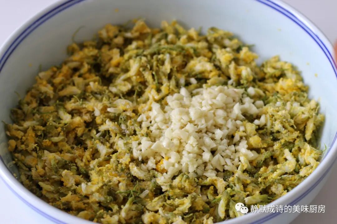 【食材】:新鲜槐花、玉米面粉、新蒜、油和盐。