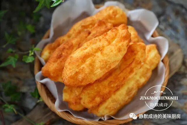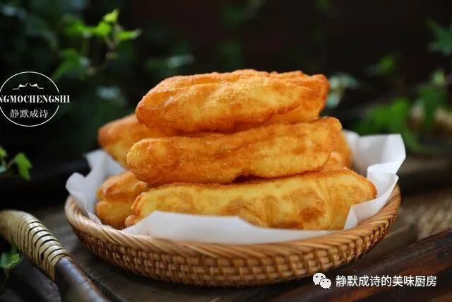 8、刚刚出锅的油条,金黄酥脆,口感特别地好,个个空心蓬松的不得了,看着就好吃,吃着更美。