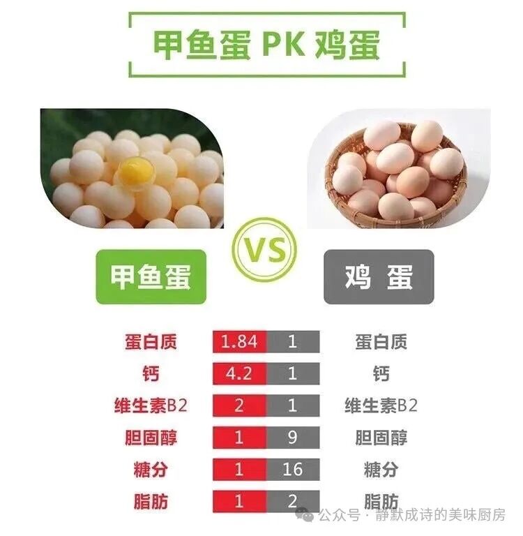 与大家日常吃的鸡蛋相比,甲鱼蛋具有富硒、蛋白质、钙、核黄素以及低糖低胆固醇的特点。常言道:浓缩的才是精华。别看甲鱼蛋小,它的营养价格可丝毫不输于鸡蛋,甚至比鸡蛋更有营养。