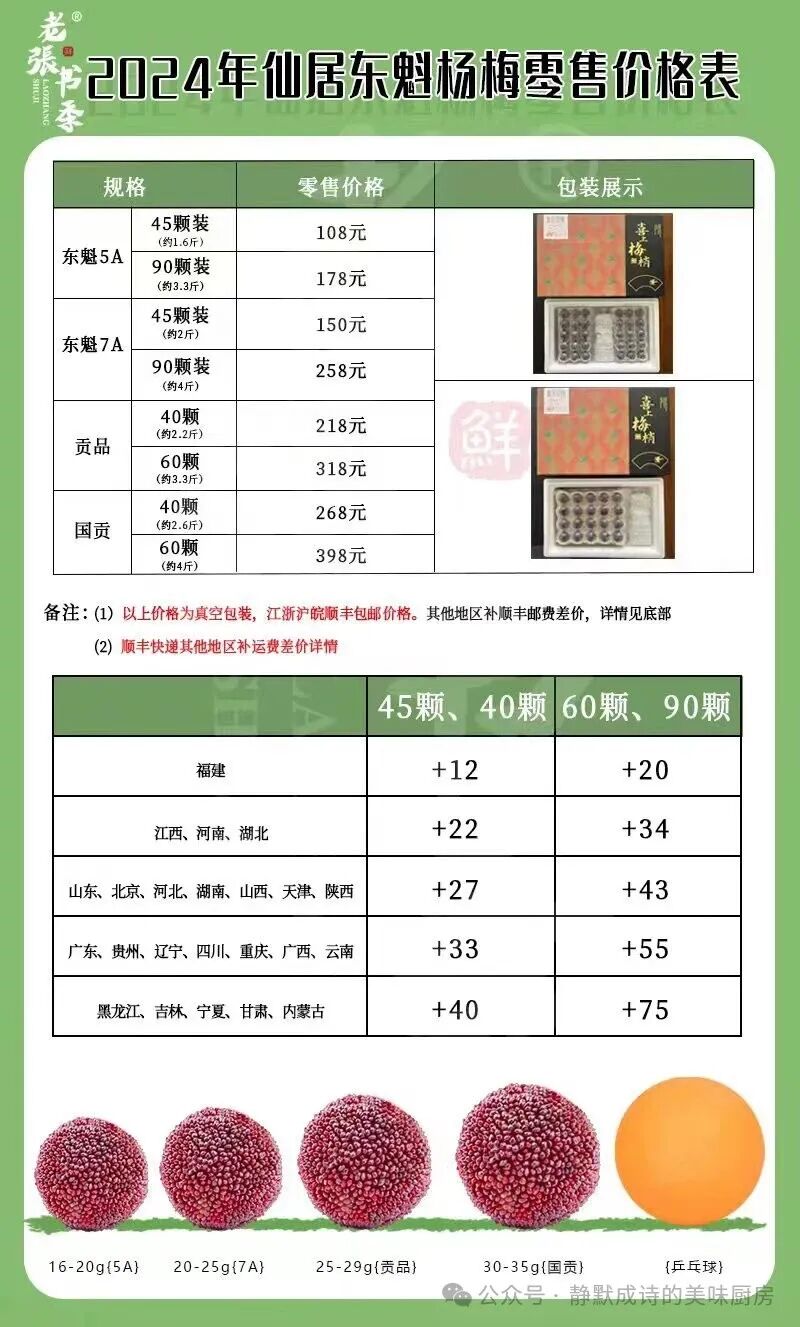 咱们的东魁杨梅有四个等级:5A、7A、贡品、国贡。四个等级的杨梅的味道和口感没什么区别。自己吃的话,5A是最实惠的。送人的话,建议7A、贡品和国贡。