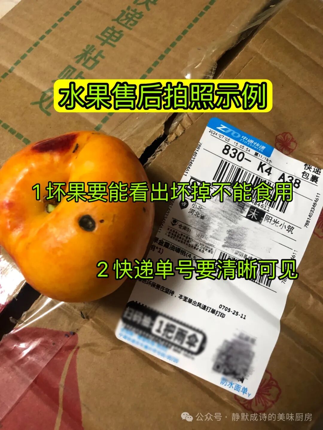 所以,及时取件并第一时间开箱检查,若有坏果,把坏果与快递面单拍合照,咔嚓一下的事儿,就能售后,就这么简单。