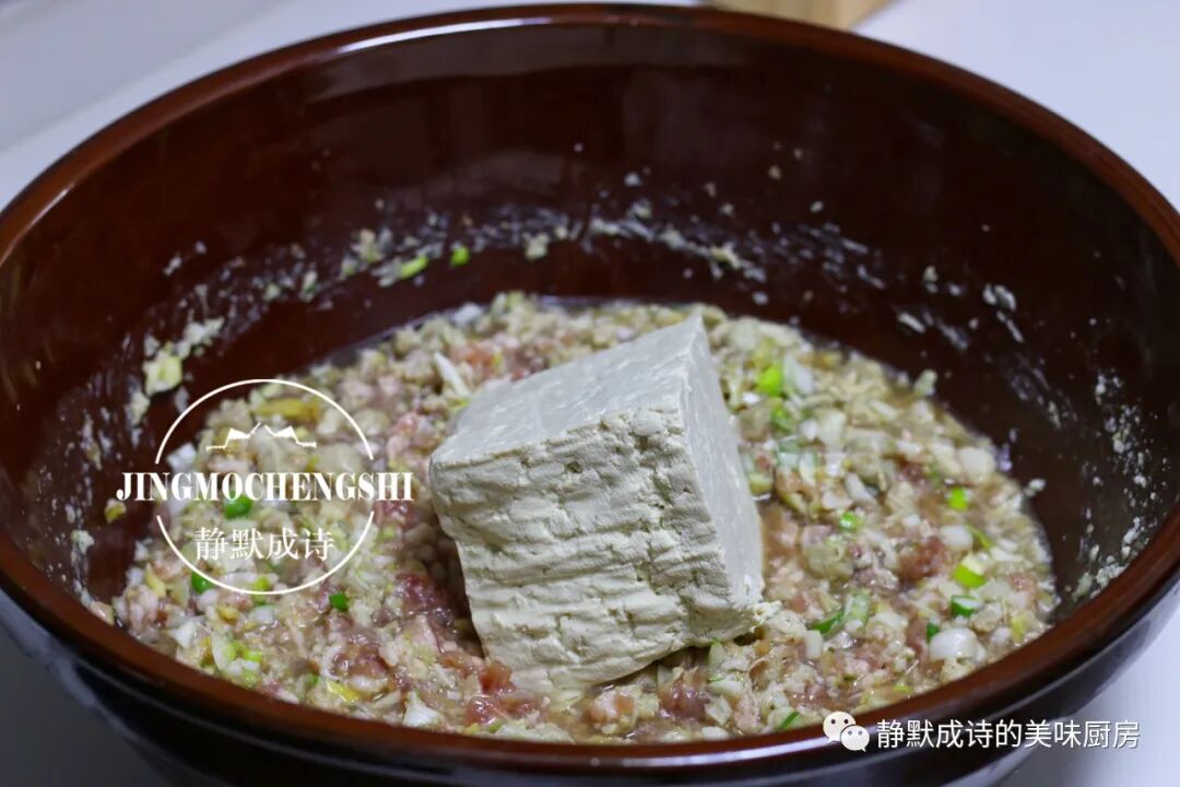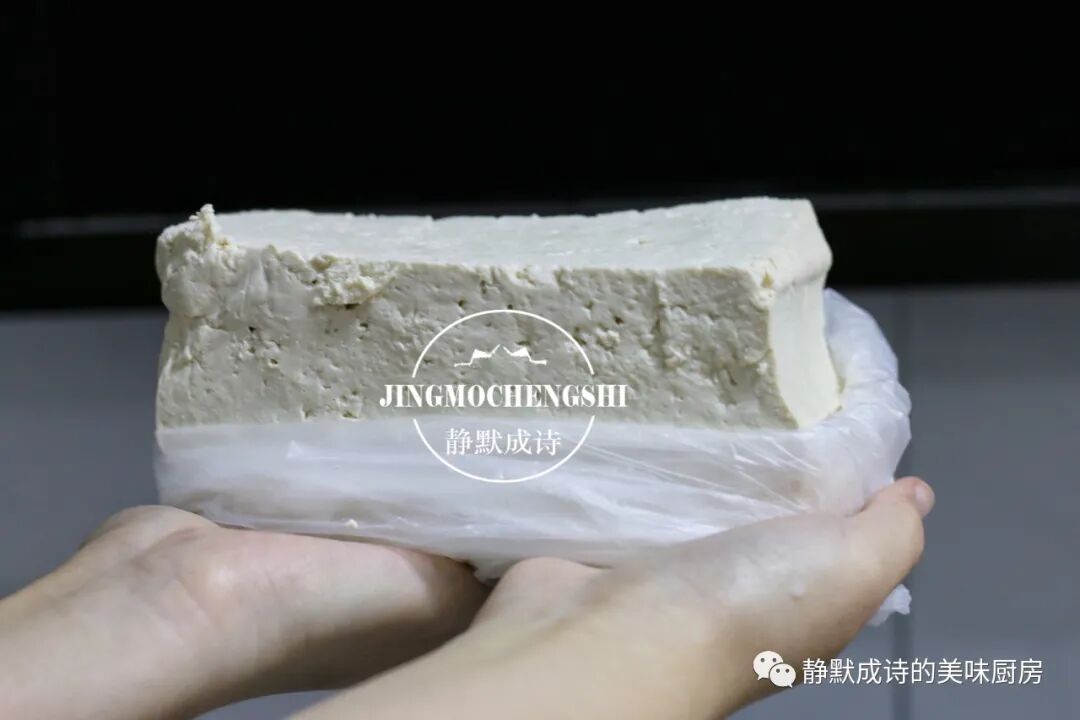 2、这是提前备好的北豆腐。炸丸子时放些豆腐,丸子会更加暄软,炸时容易蓬松,既增加了蛋白质,又增添了口感。