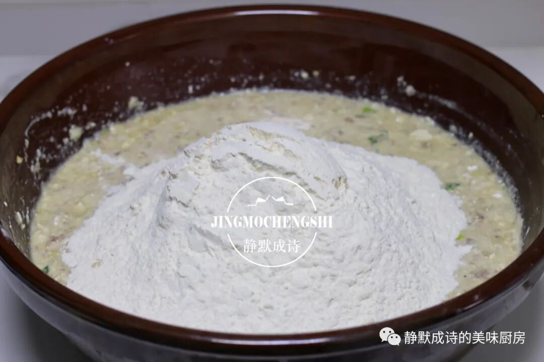 10、然后再加入适量面粉,红薯淀粉与面粉的比例是1:2左右。