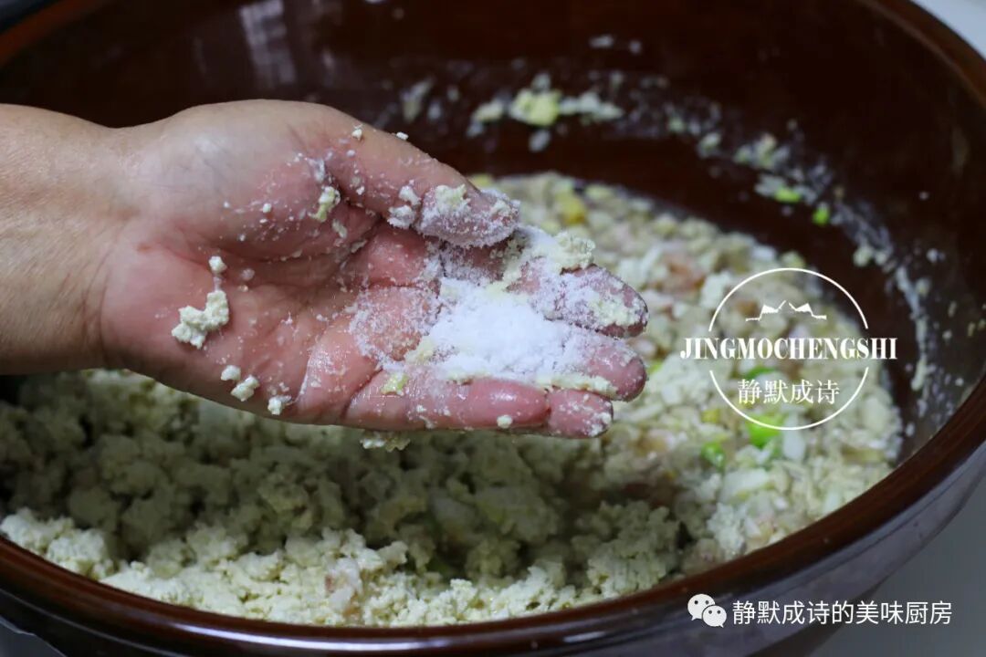6、豆腐全部捏碎之后,再视咸淡程度决定加不加盐(因为肉汤咸)。