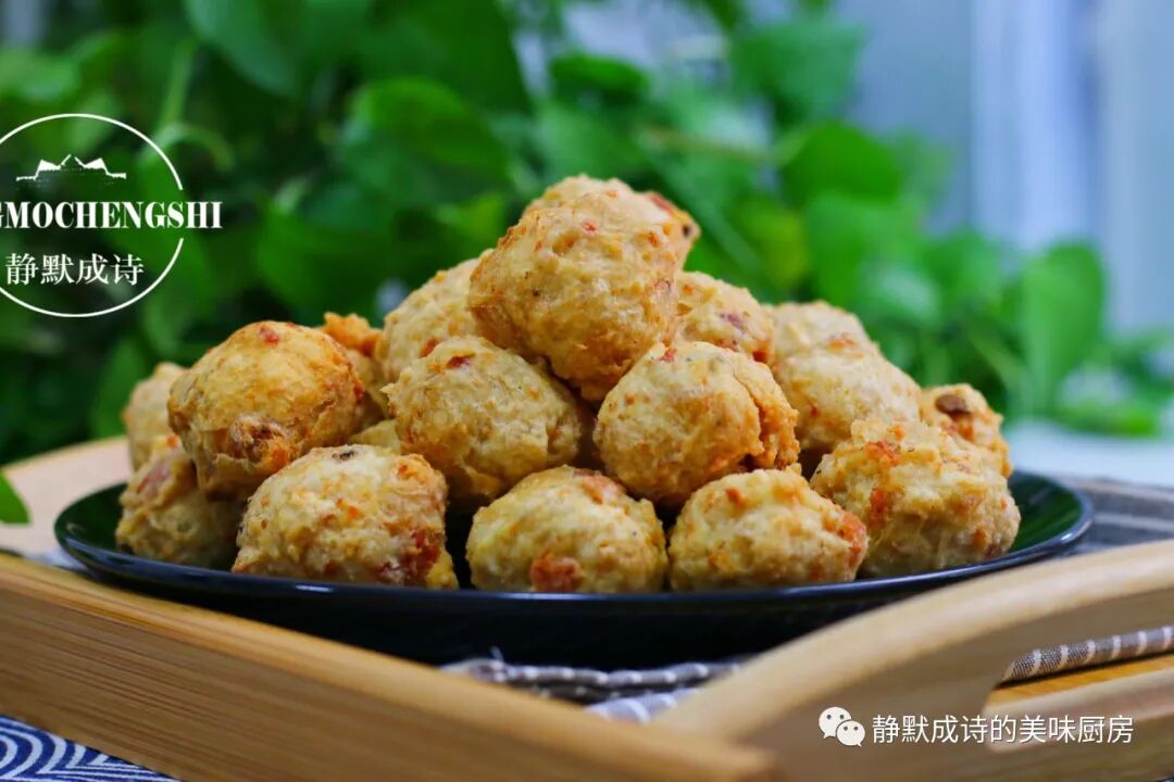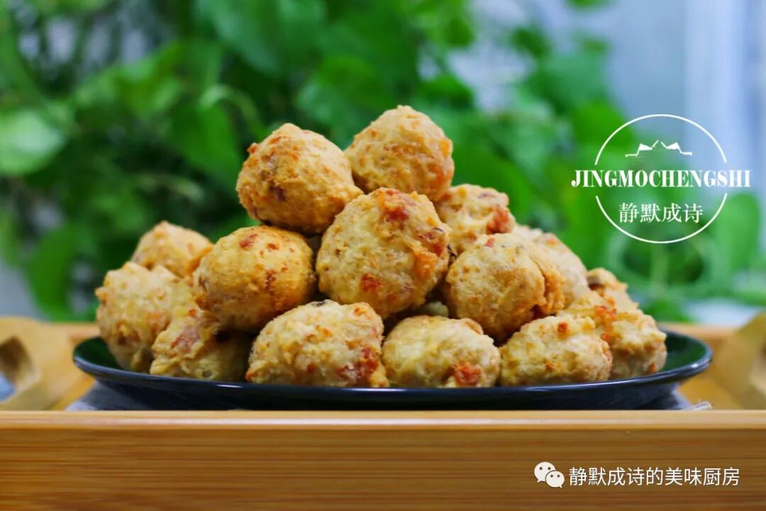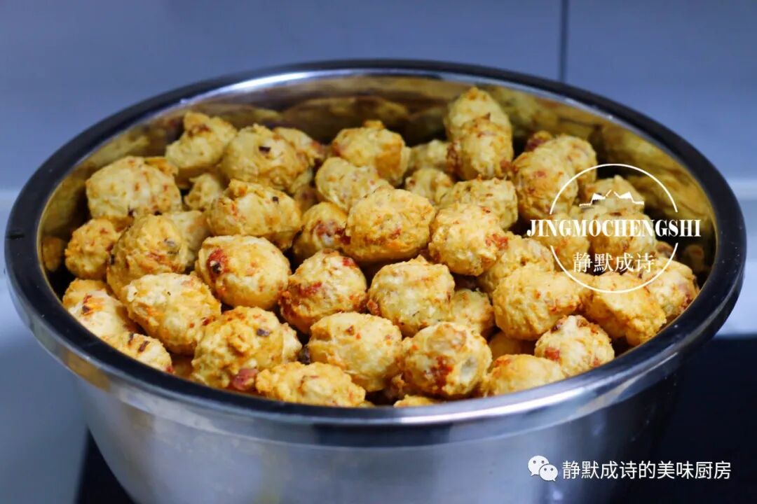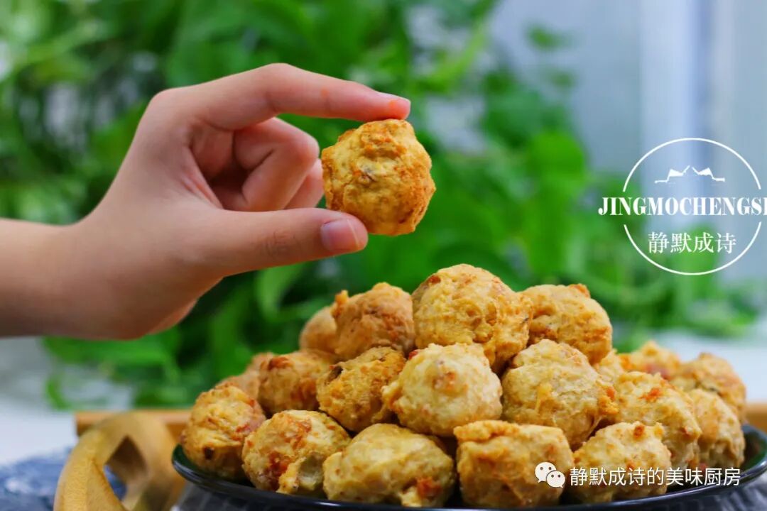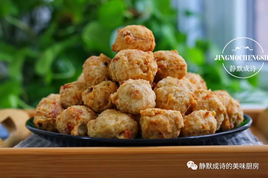 17、刚刚出锅的丸子,表皮是酥脆的,里面是软嫩的,口感是双重的哦!放凉之后分装冷冻保存即可。