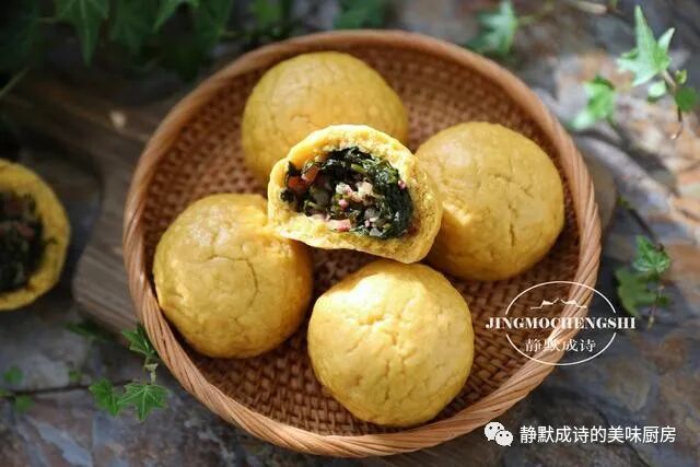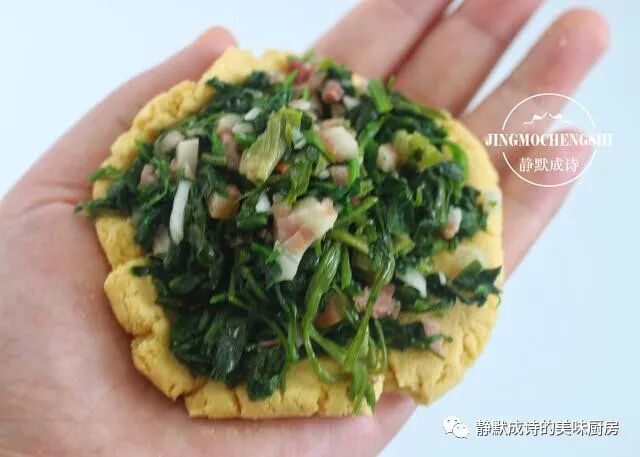 【食材】:玉米面200克、普通面粉100克、豆面100克、酵母4克、猪肉100克、荠菜1把、葱半棵、十三香少许、熟花生油2汤匙、香油1茶匙、盐适量。