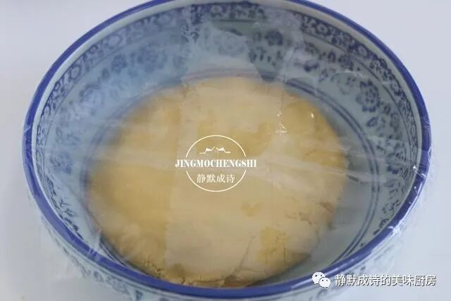 3、然后下手,把面团揉好,揉至细腻,就可以盖好保鲜膜让它自然发酵了。但大家要注意,这里我们不需要面团发酵至两倍大,在室温下发酵半个多小时至半发状态就可以包团子了。
